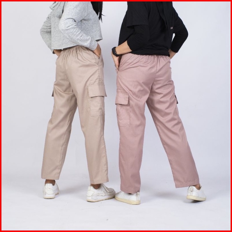 Heygloris - Retro Cargo Pants Celana Kargo Panjang Wanita Jumbo American Drill Premium Highwaist
