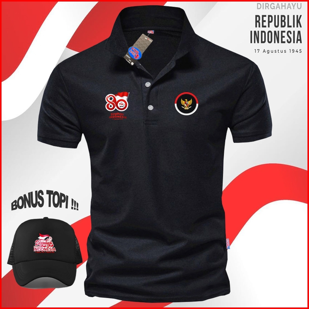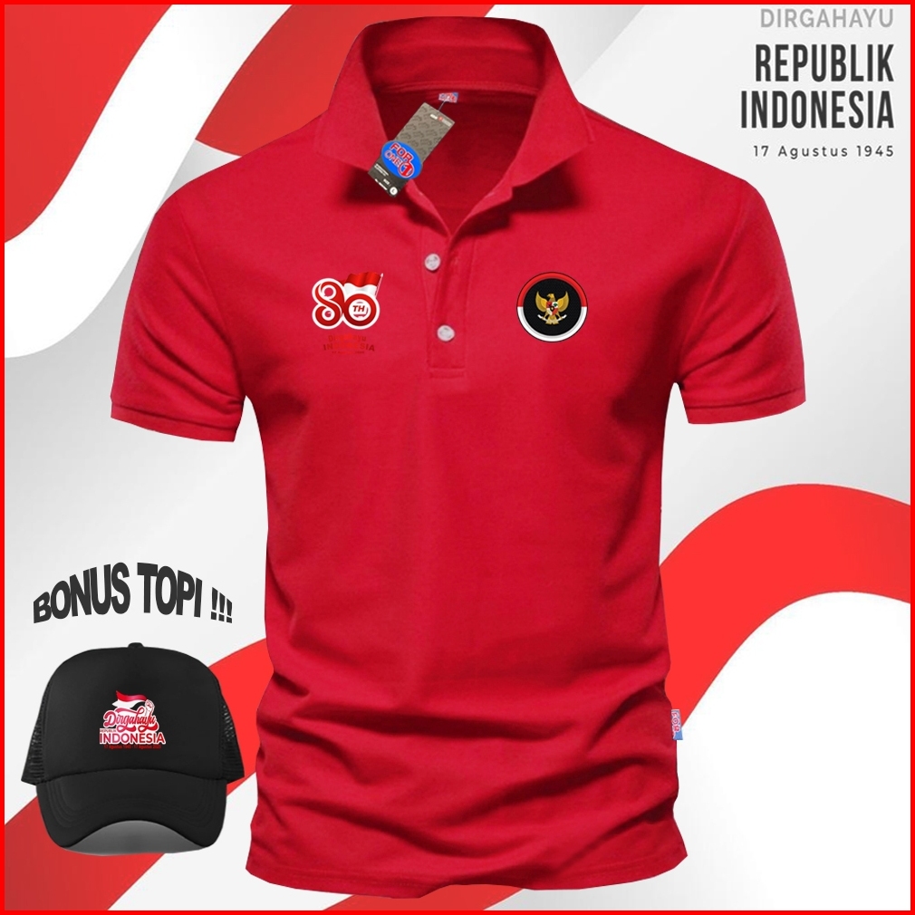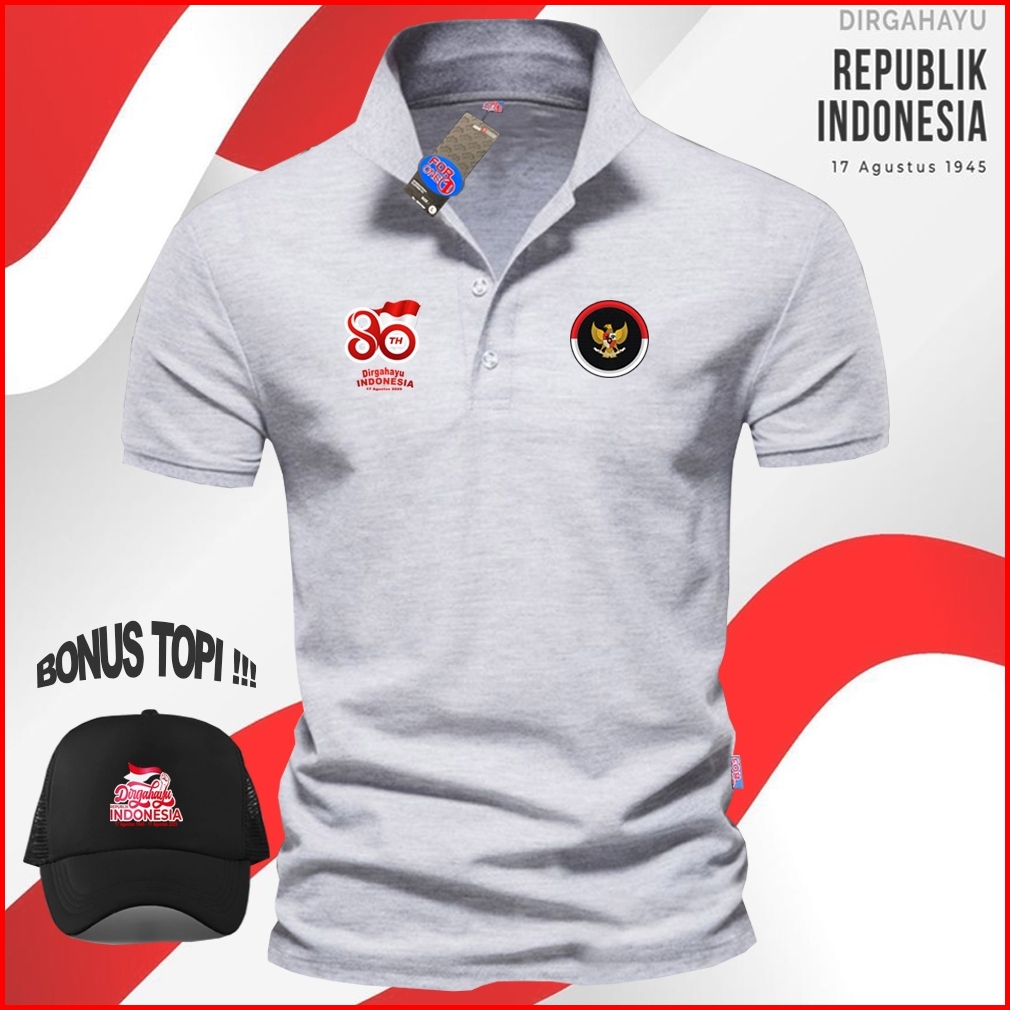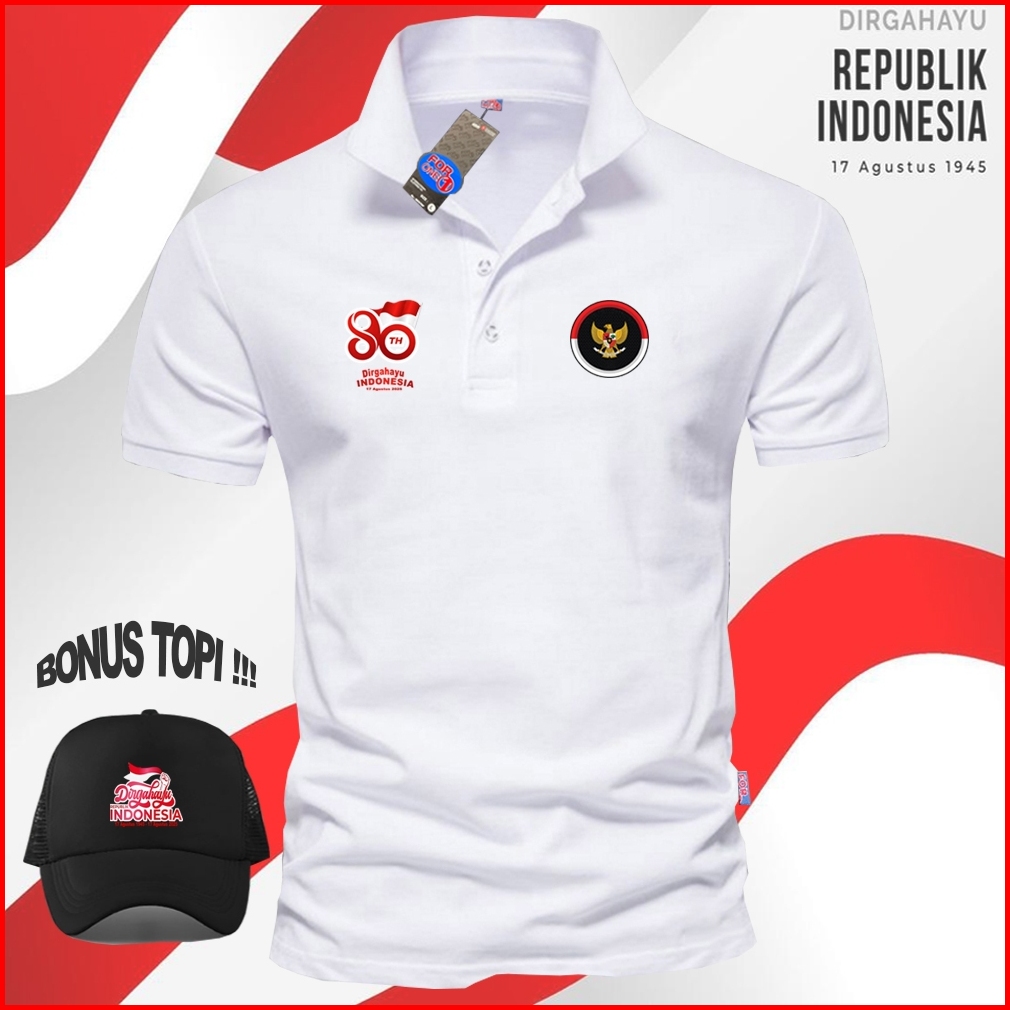 Gratis Topi.. - Hut Ri Dirgahayu Yang Ke 80 - Polo Lengan Pendek Garuda Bulat02 80 - 07 Kaos Kerah Pria Dewasa - Polo Se