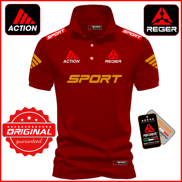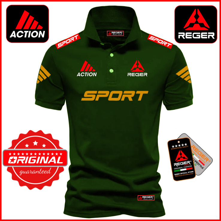 Promo Baju Polo Reger Action Sport Text Depan Lurus Less Bahulengan Logo Sablon Baju Pria Dan Wanita Dewasa Terbaru