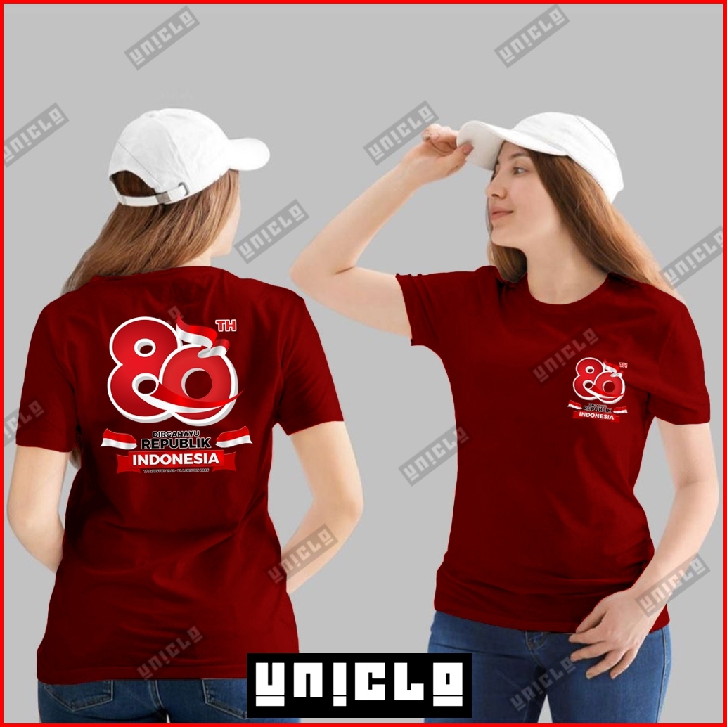 Kaos 17 Agustus Hut 80th Pria Wanita Cotton Combed 24s Lengan Pendek Printed 17 Agustus 006