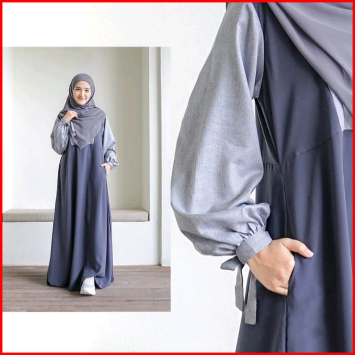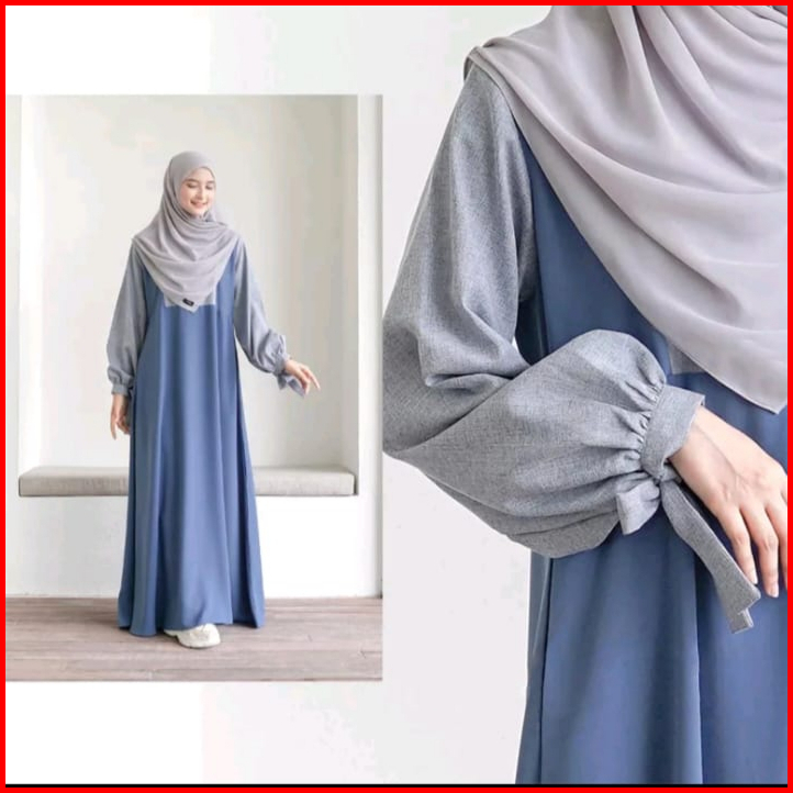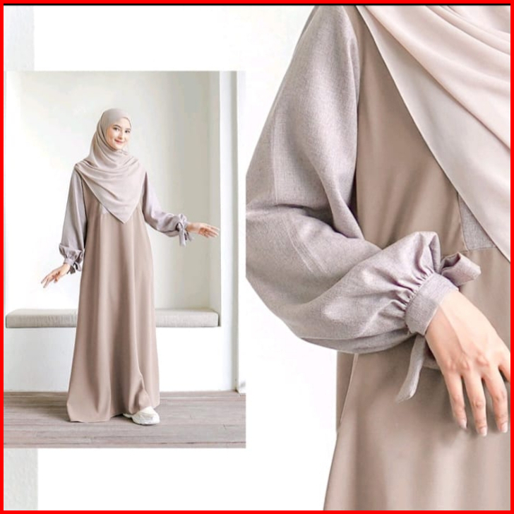 Dress Crinkle Kombinasi Remaja Elegan Gamis Cantik Polos Dress Wanita Trendy