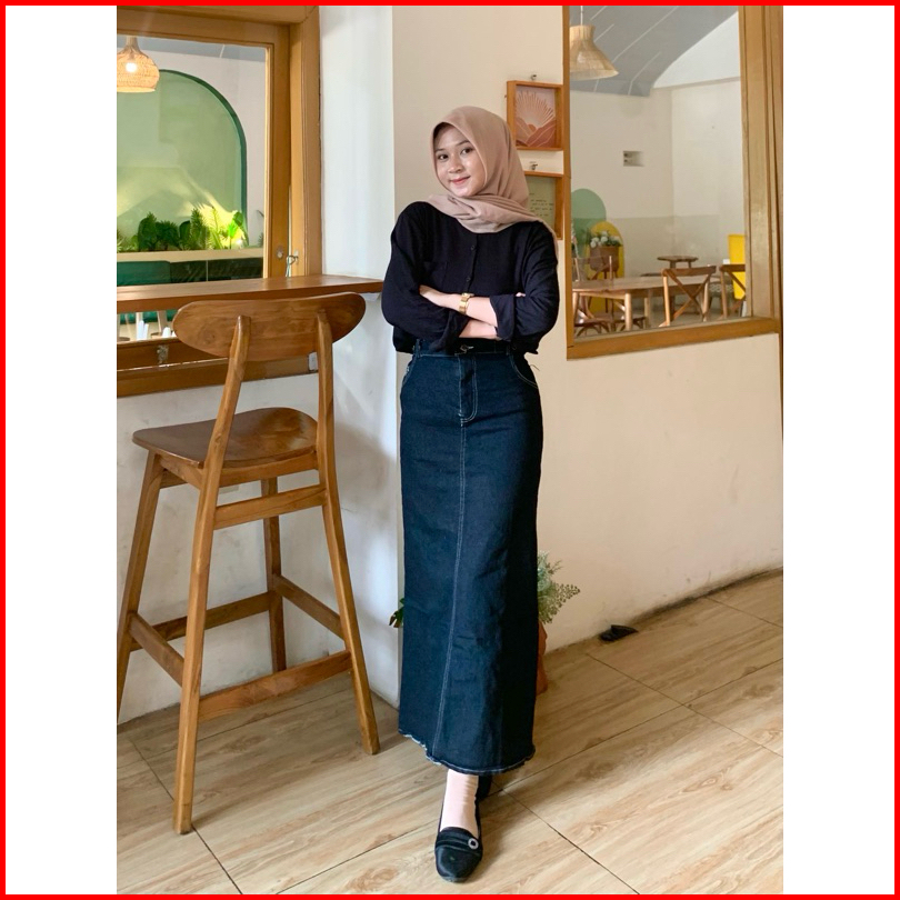 Raliren- Highwaist Rok Basic Jeans Panjang 991 Seventy Rok Jeans Panjang