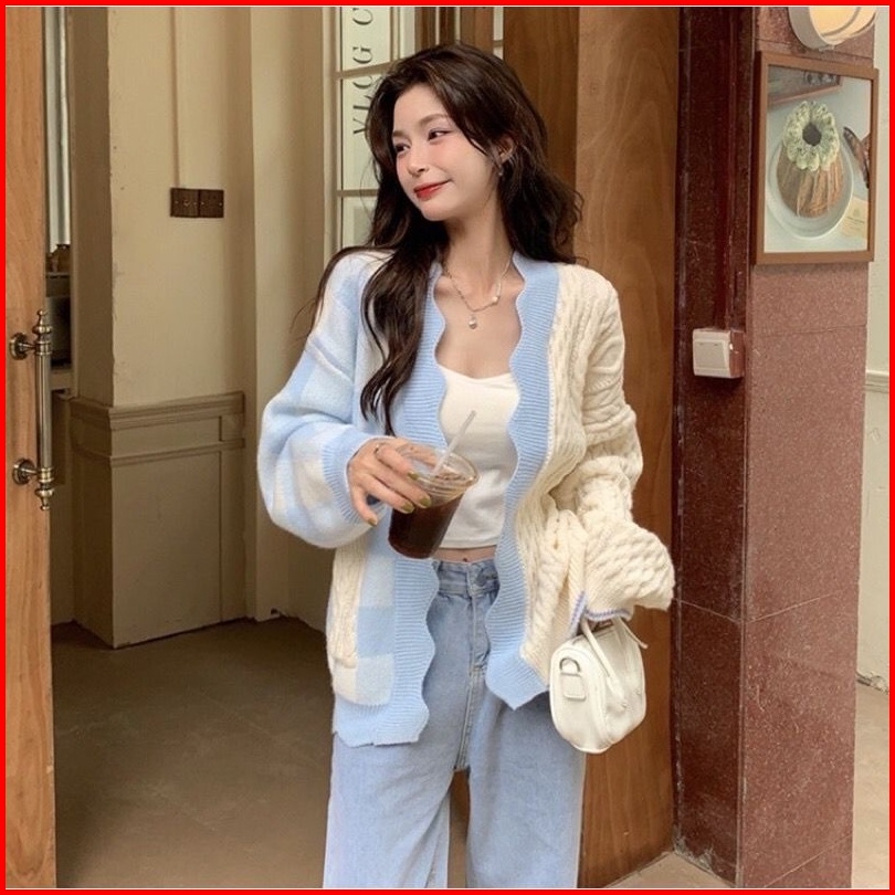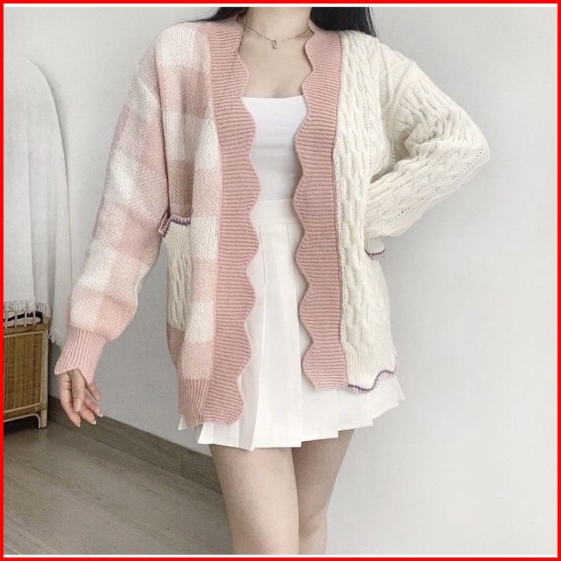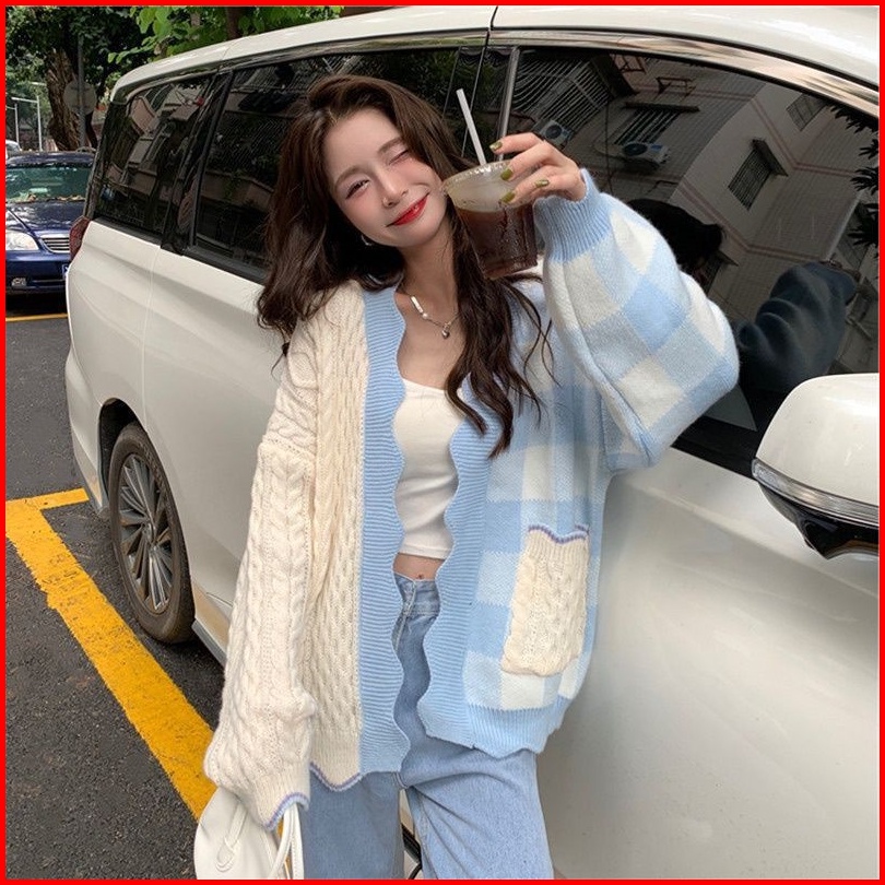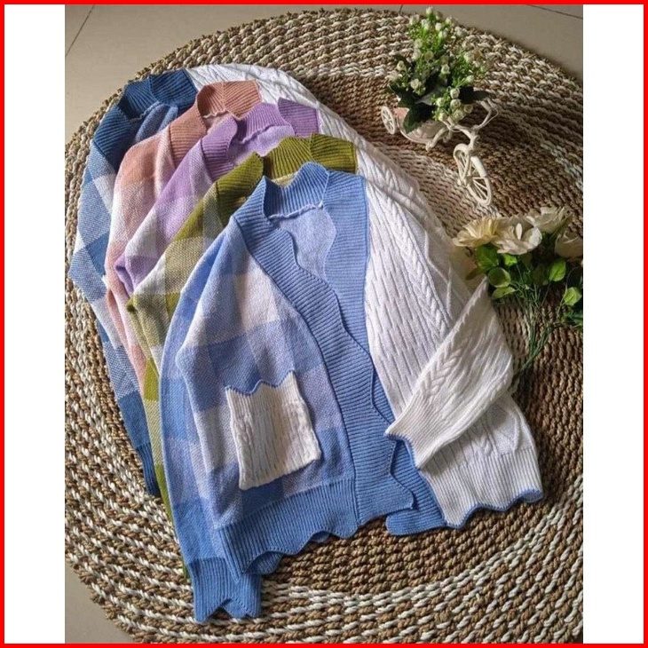 Tessa Pocket Outher Knite Cardigan Rajut Premium Outher Cable Korean Style Mix Chackered