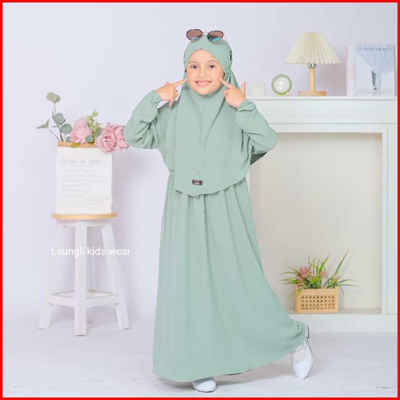 Aira Gamis Anak Perempuan Set Hijab Terbaru Bahan Cringkel Premium