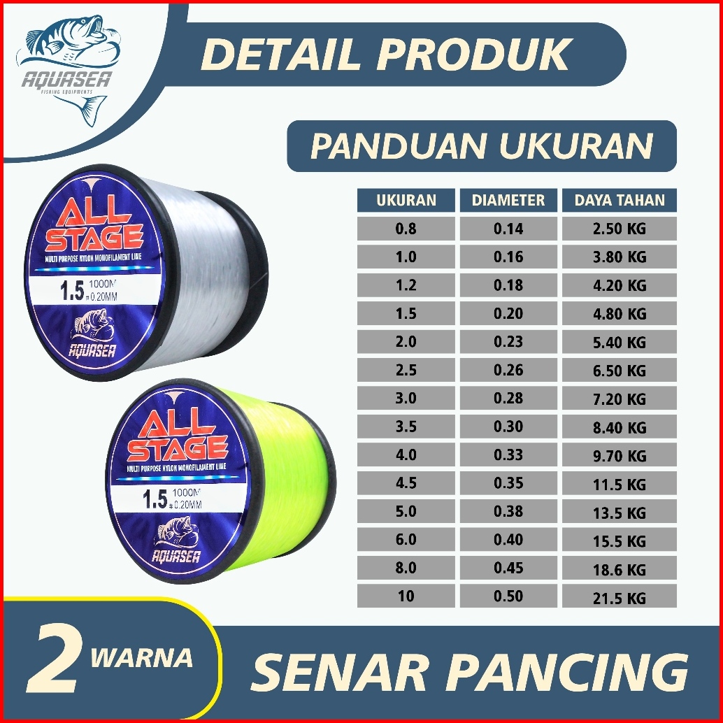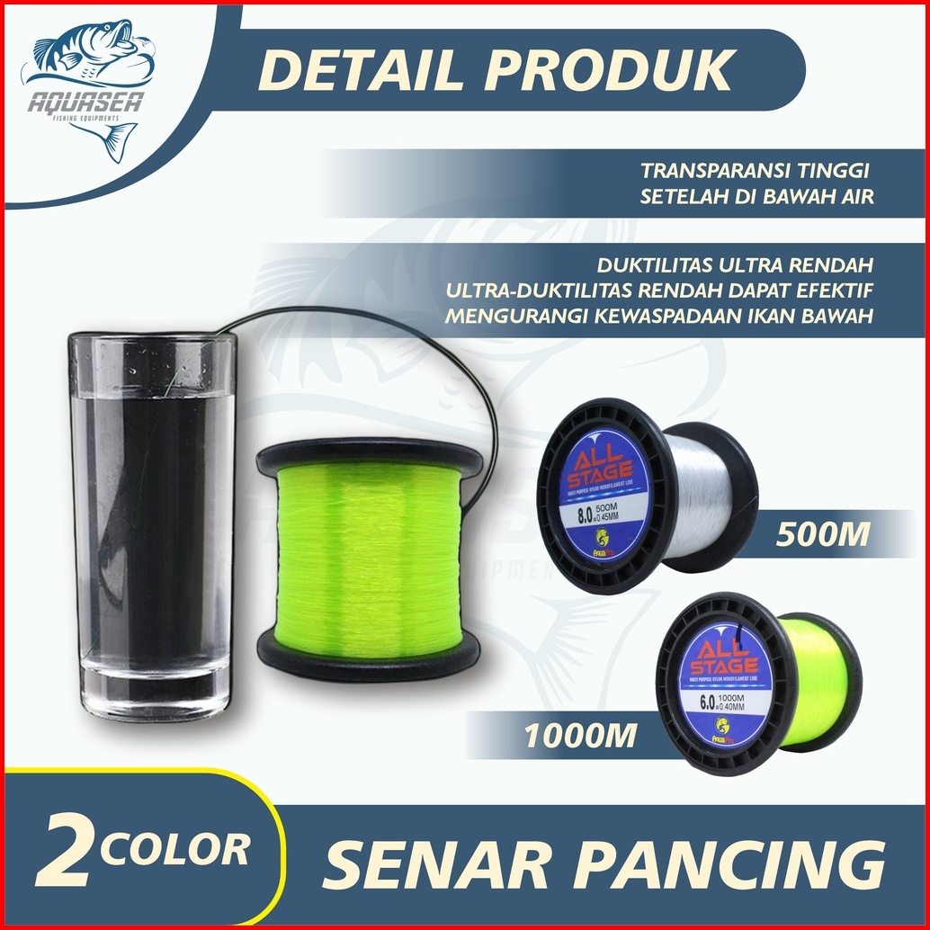 Aquasea Tali Pancing 1000m Warna Putih Dan Hijau Nilon Fishing Line Original Senar Pancing All Stage