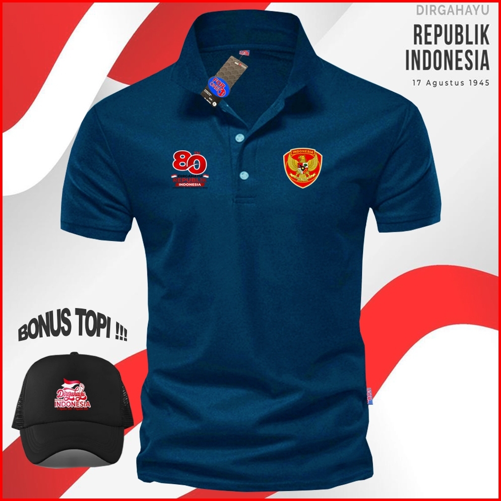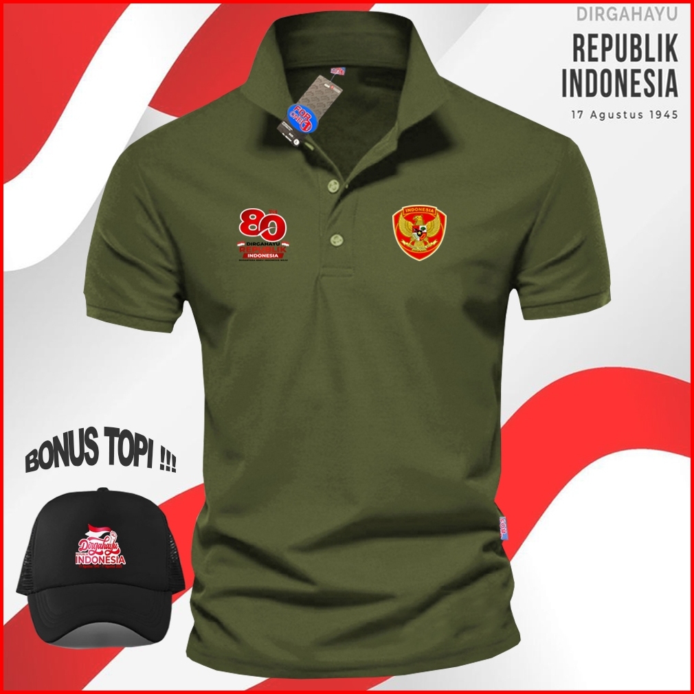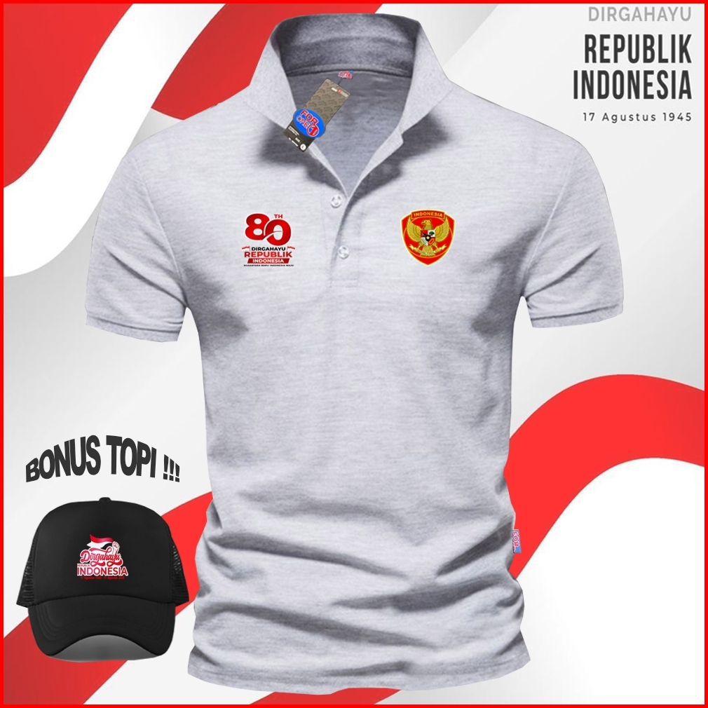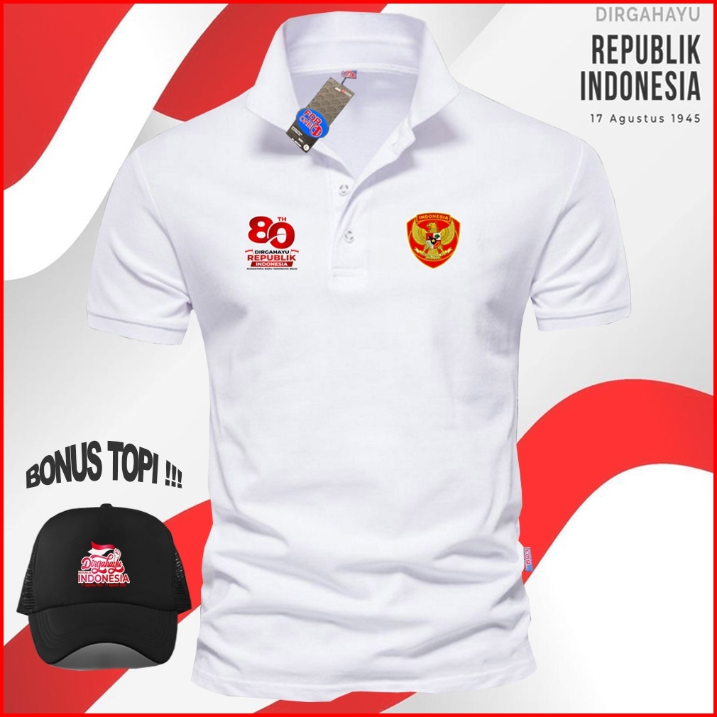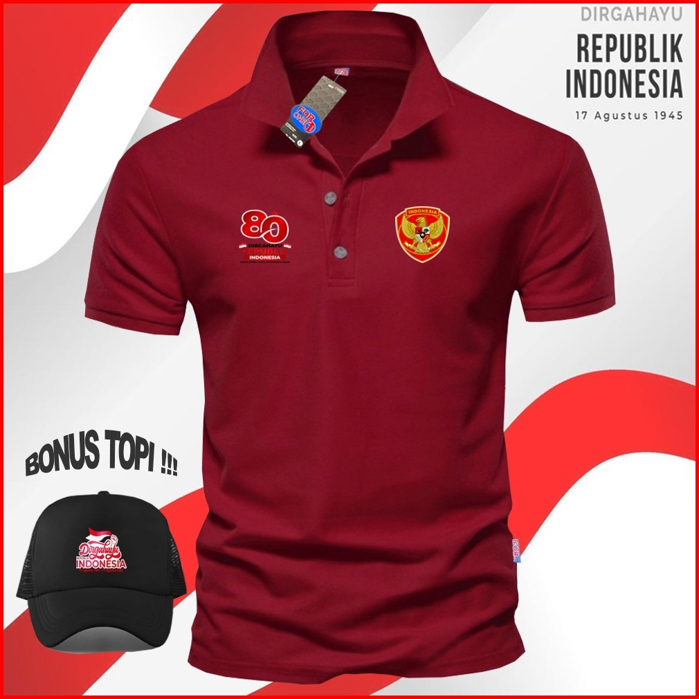 Gratis Topi.. - Unisex Hut Ri Dirgahayu Yang Ke 80 Tahun - Polo Lengan Pendek Garuda Merah 80 - 2 Kaos Kerah Pria Dewasa