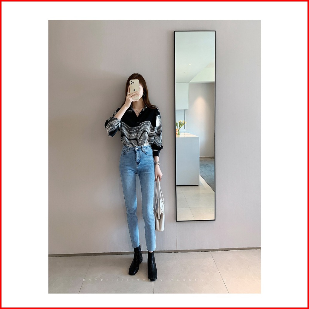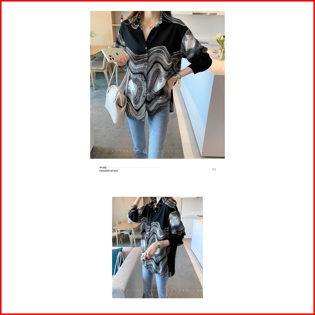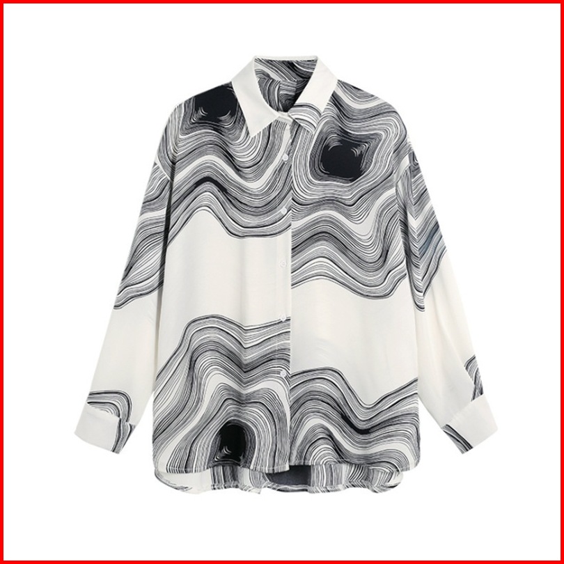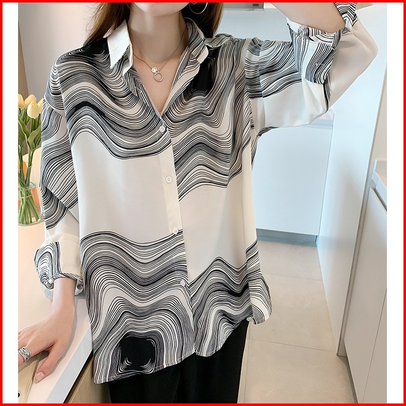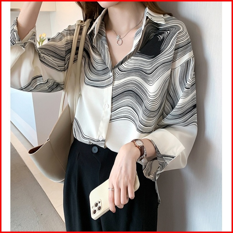 Kyla - Kemeja Korean Style Kemeja Lengan Panjang Kemeja Motif Geometrik Atasan Wanita