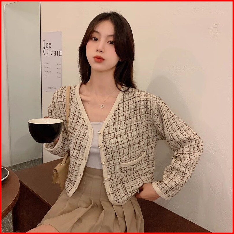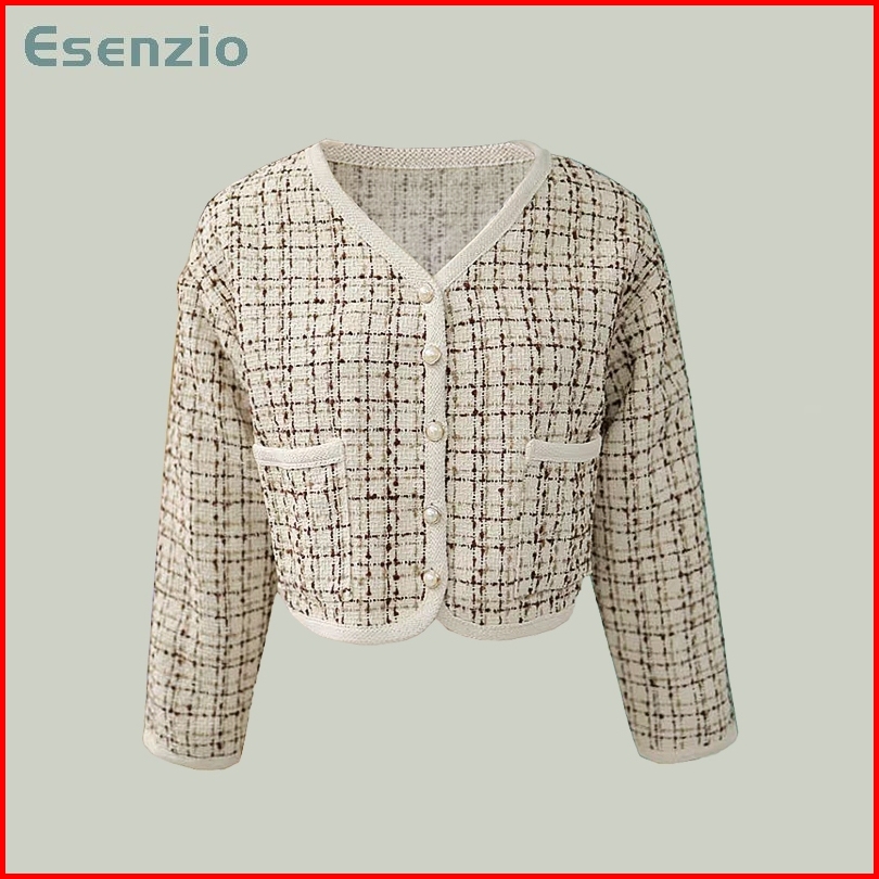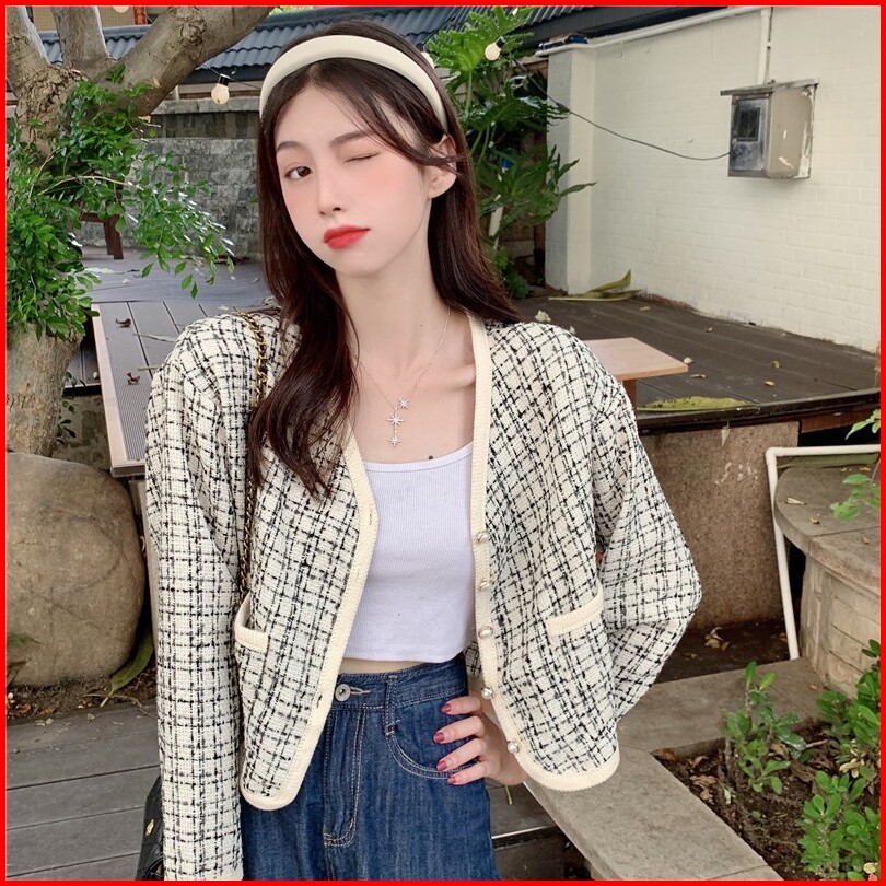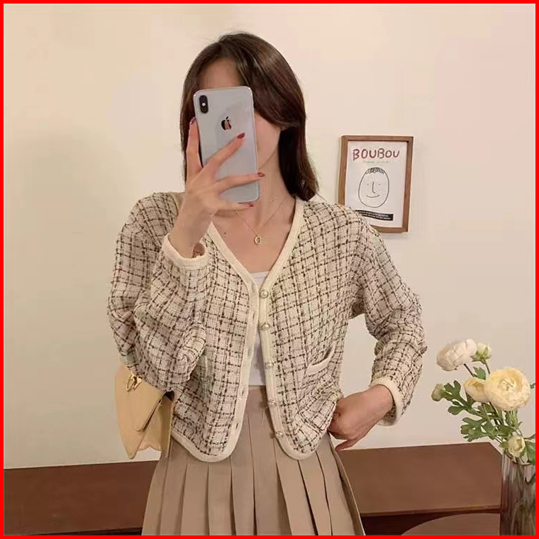 Esenzio Atasan Crop Top Jaket Wanita Terbaru Korean Style Outer Crop Jacket Lengan Panjang Cardigan Hitam Blazer Atasan