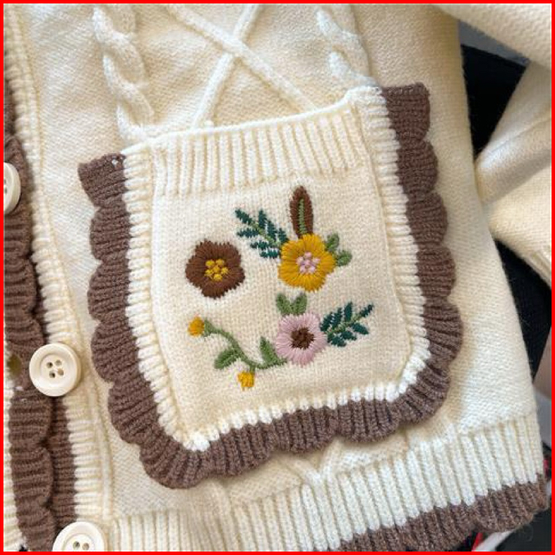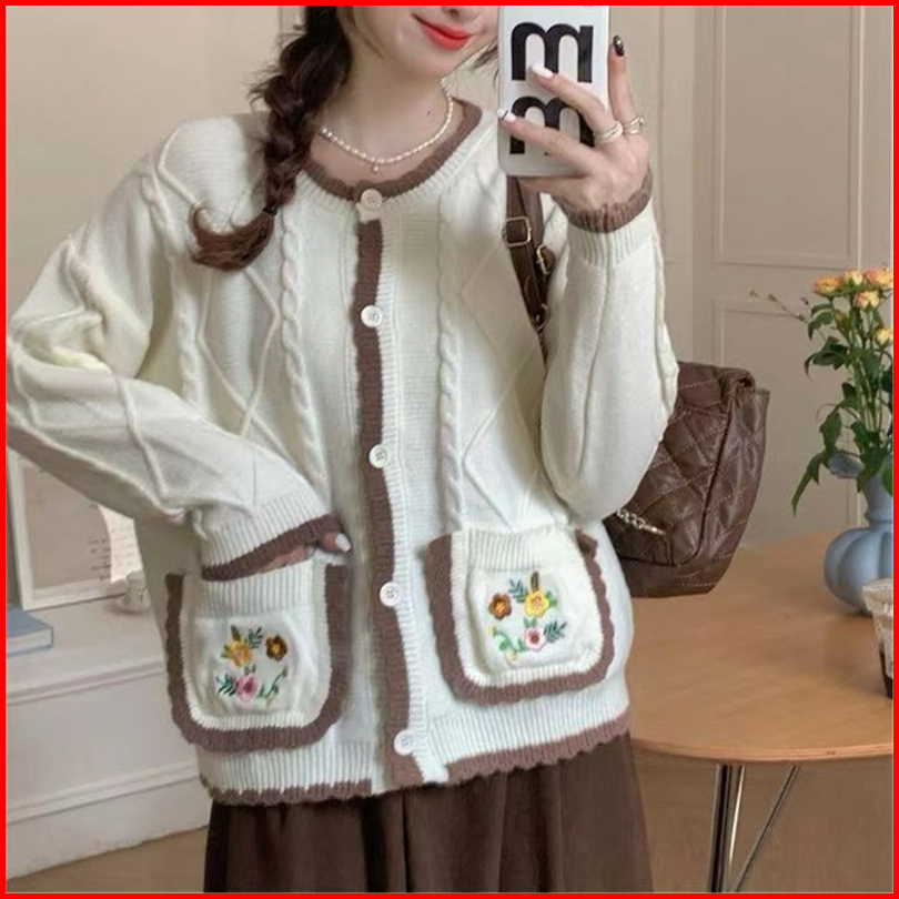 Aludra Cardigan Saku Bordir Korean Style Cardigan Rajut Knitwear Outer Saku Bunga Bordir Atasan Rajit Sweater