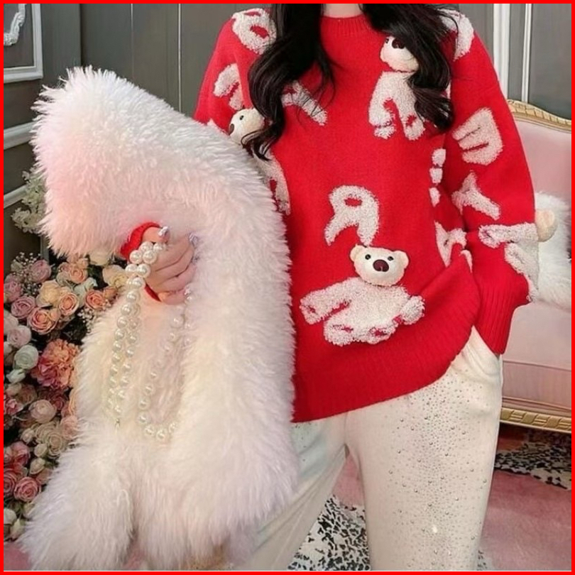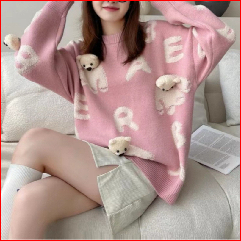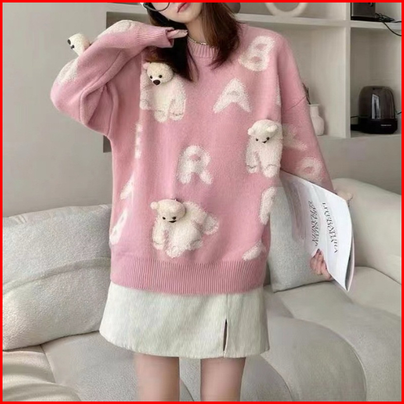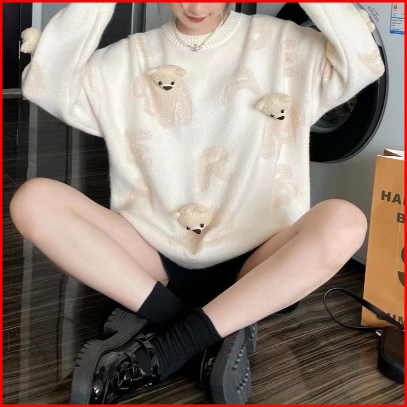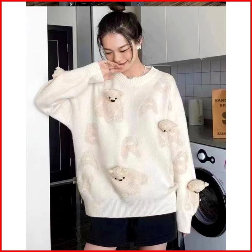 Cardigan Knit Korea Import Cardigan Bear Outerwear Cardigan Bangkok Kardigan Kardigan Wanita Atasan Rajut- Knit Cardi Ca