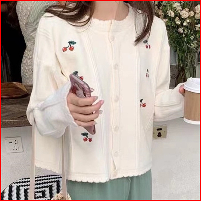 Canara - Cardigan Knit Cherry Korea Import Cherry Cardigan Korean Outer Outerwear Cardigan Bkk Kardigan Kardigan Wanita
