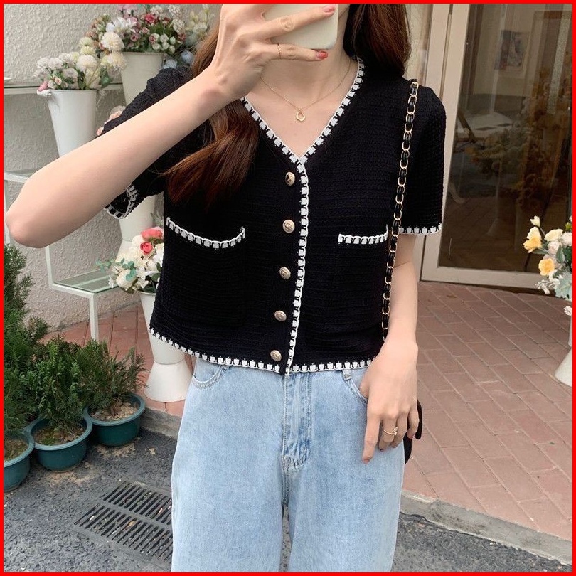 Knit Top Pocket Import Cardigan Rajut Impor Outer Korean Style
