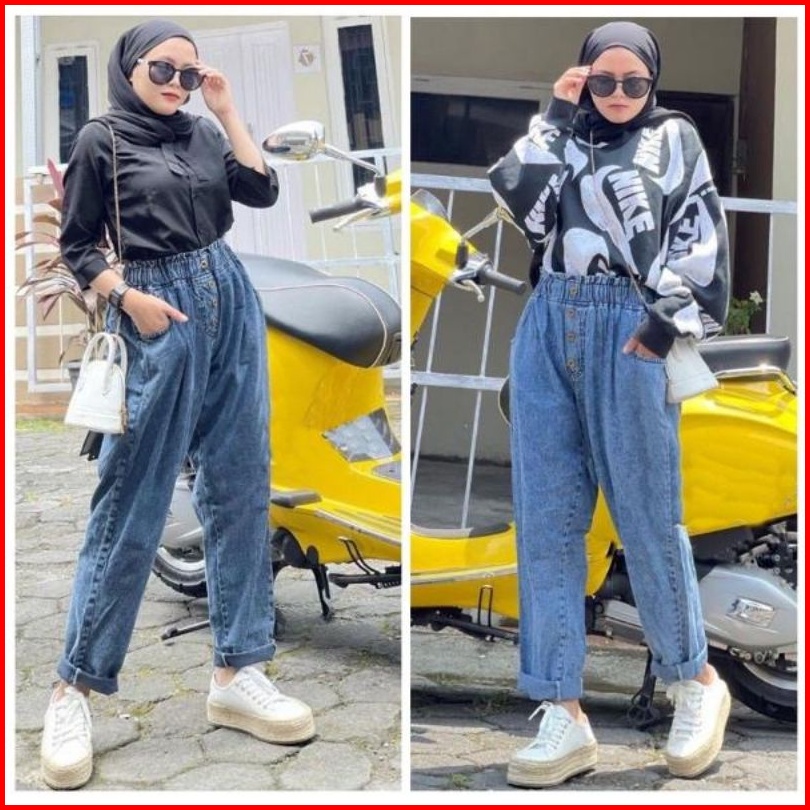 Gemini Pants Celana Baggy Boyfriend Pendek 7 8 Jeans Jins Denim Wanita