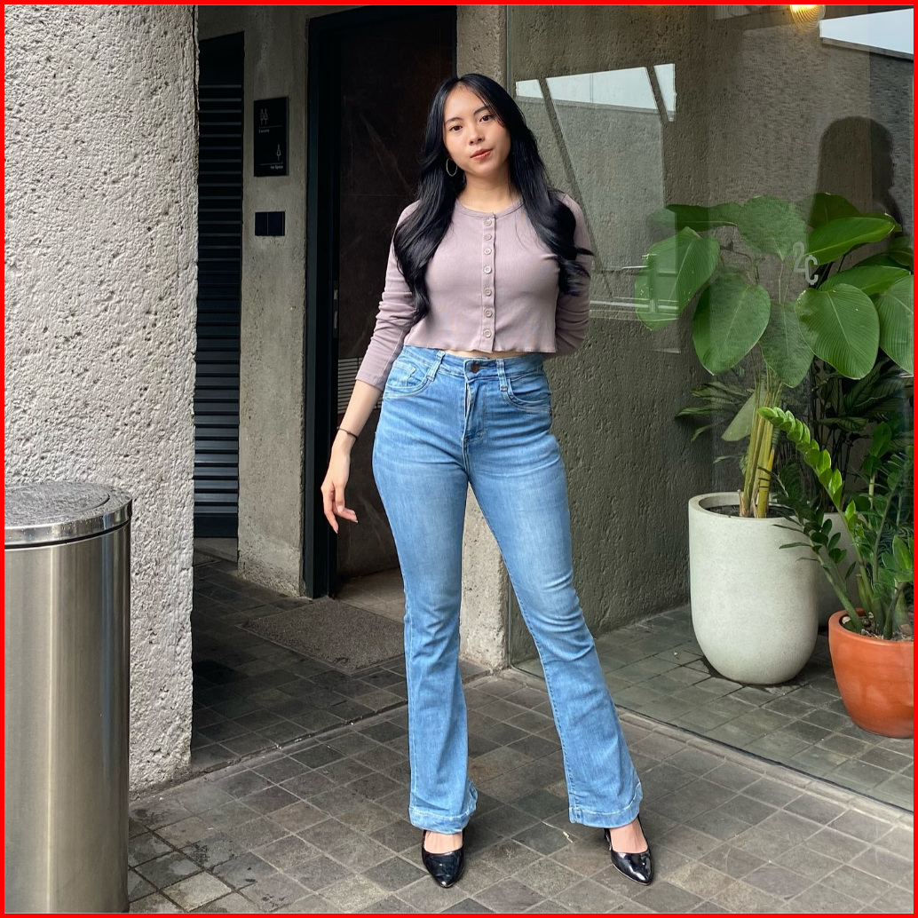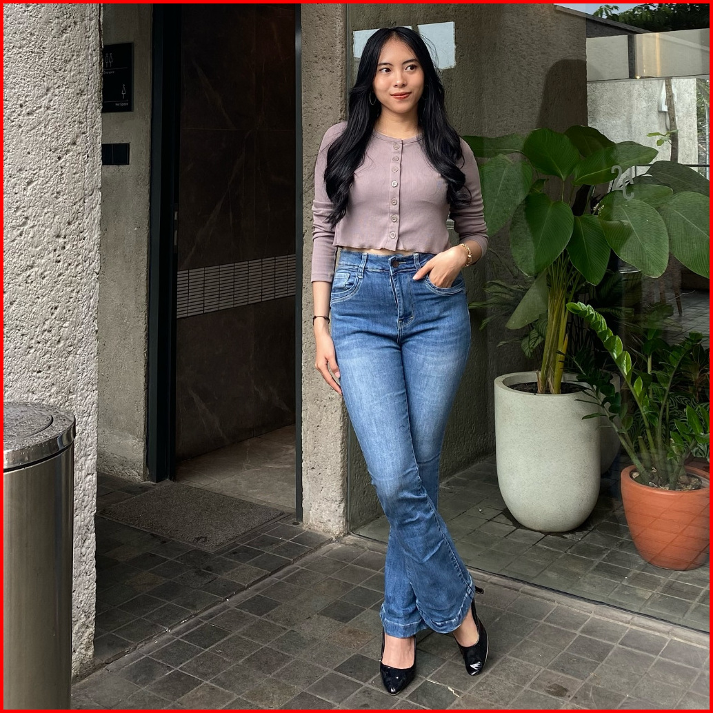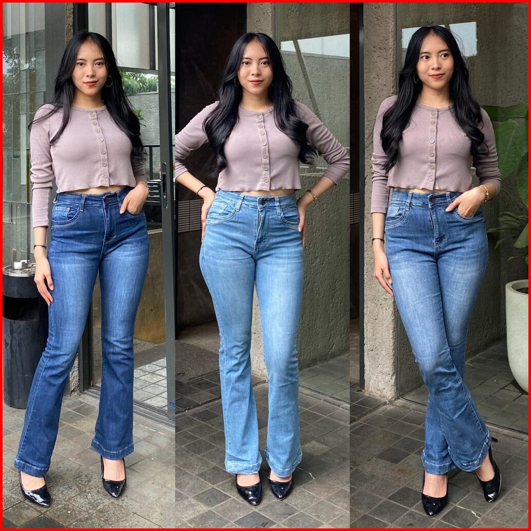Alya Cutbray Highwaist Series Celana Jeans Flare Strech Wanita Premium Quality