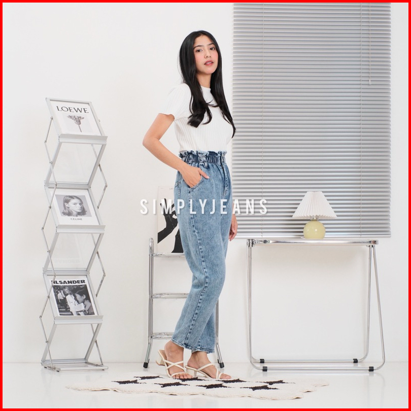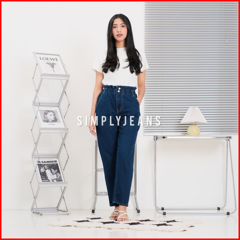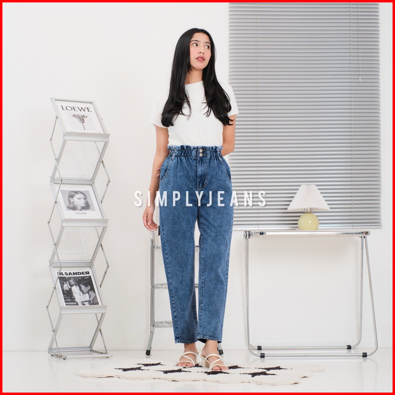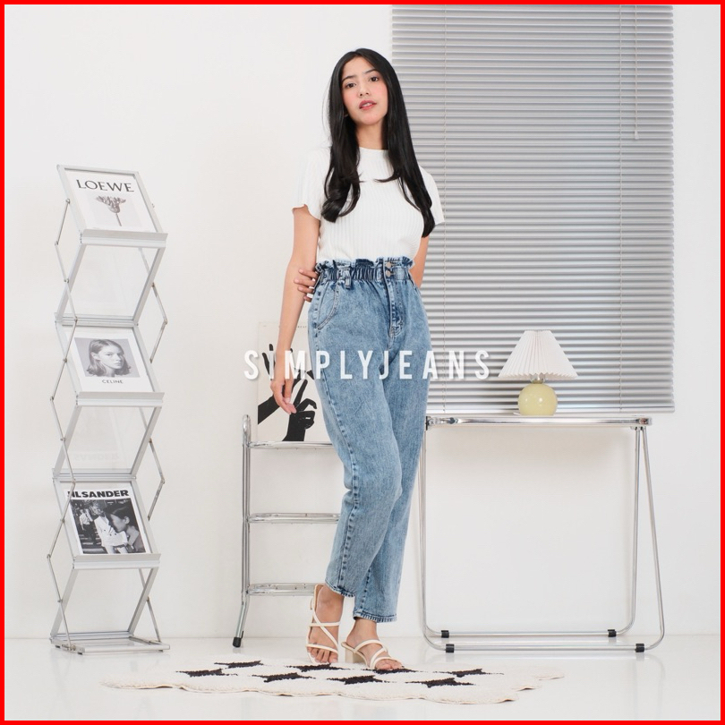 Boyfriend Karet Pinggang Jeans Highwaist -jessie 2 Button