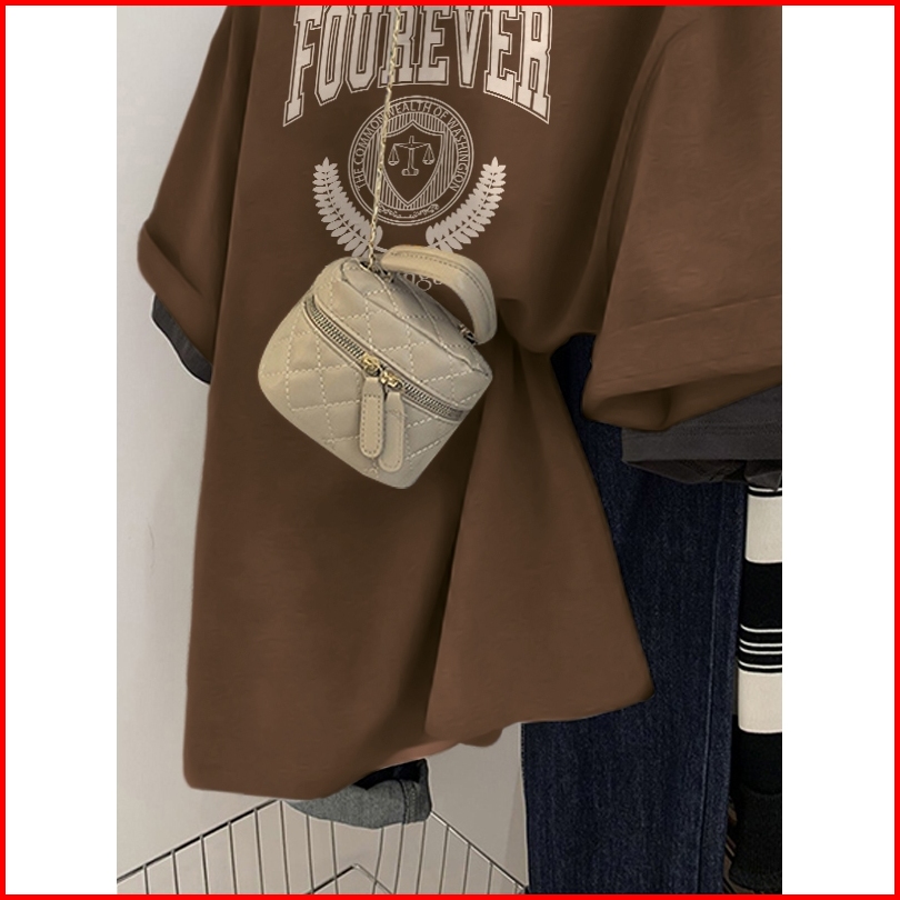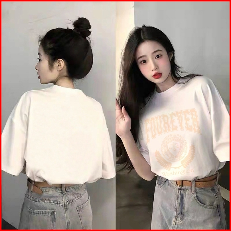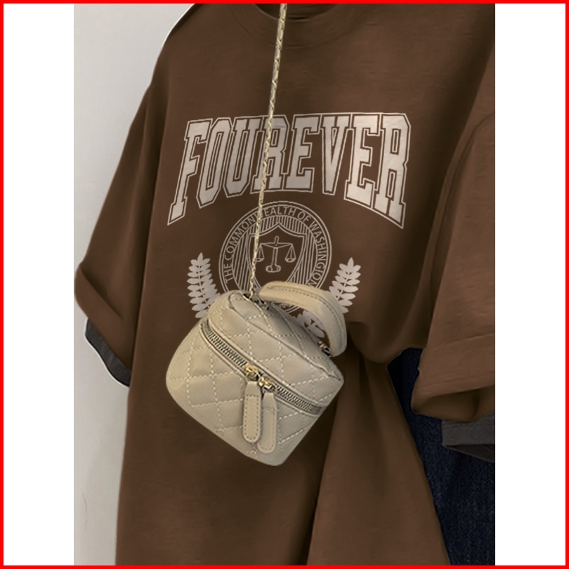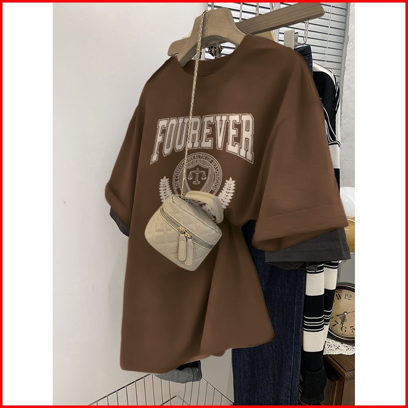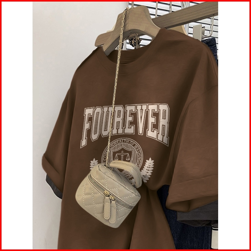 A0890 Forteid T-shirt Oversize American Vintage Guarding Wheat Ears Print Kaos Wanita Toffe Baju Atasan Lengan Pendek