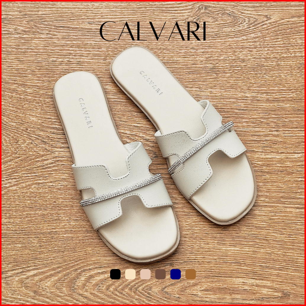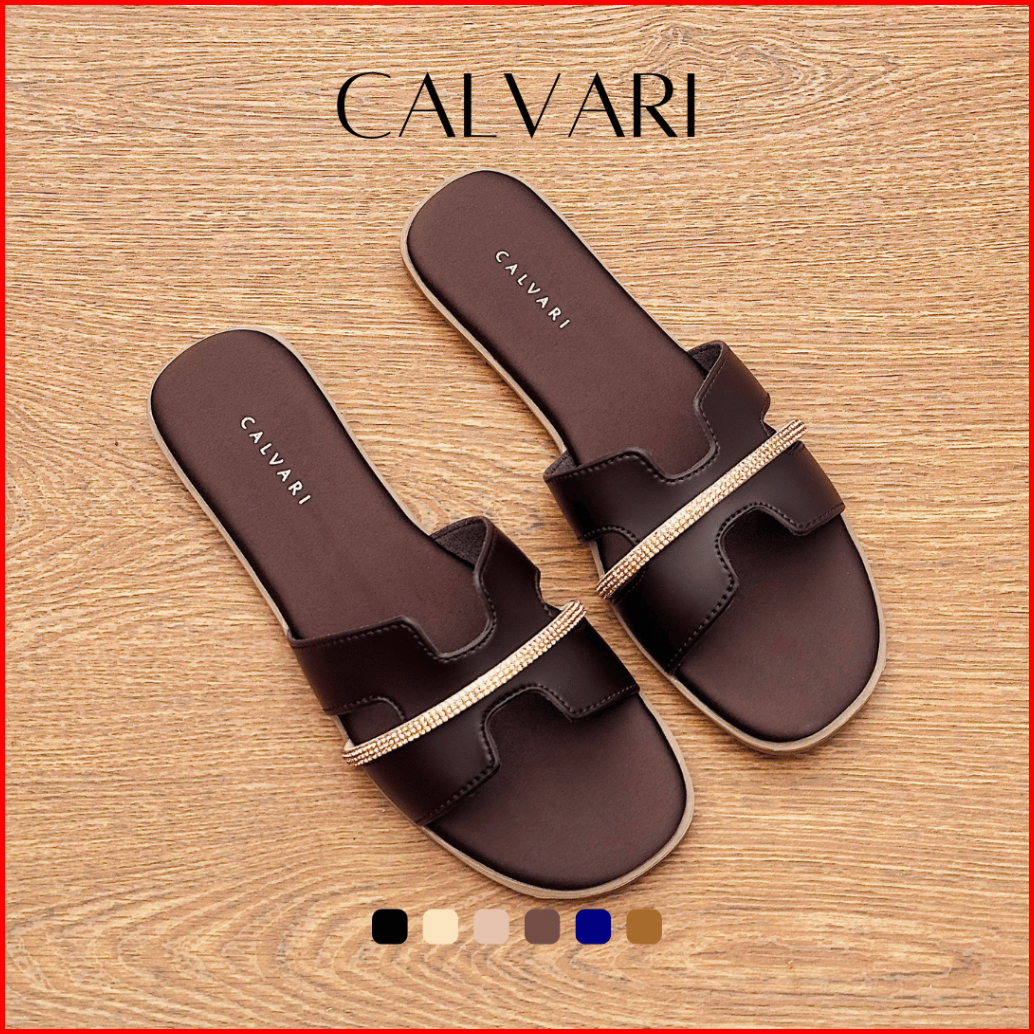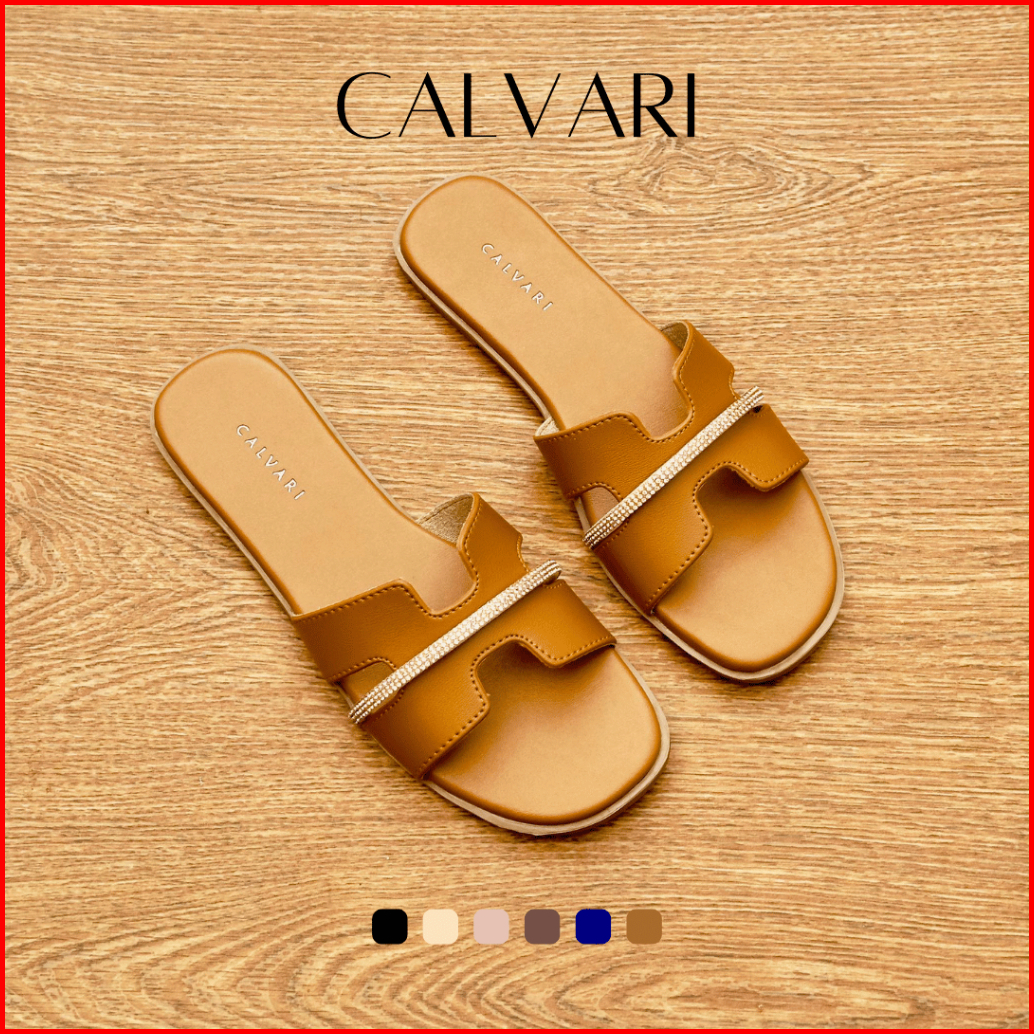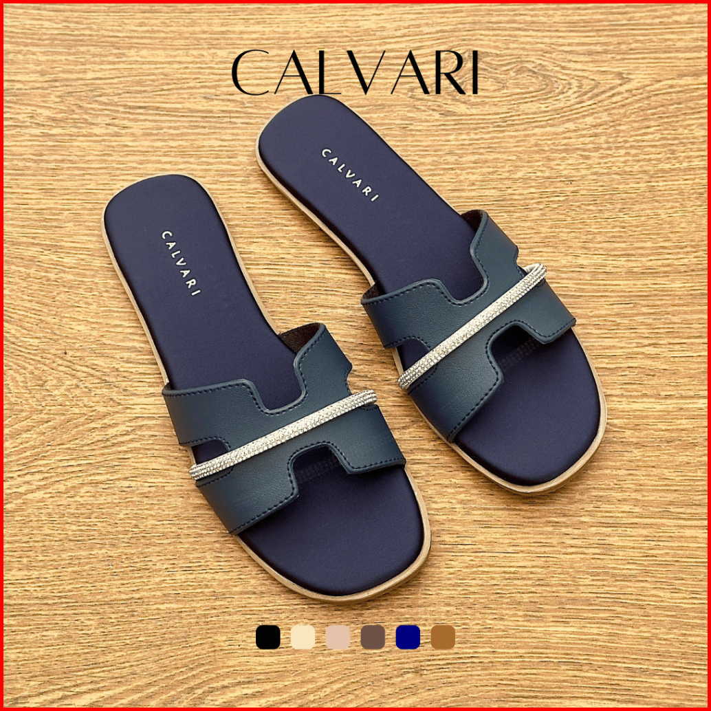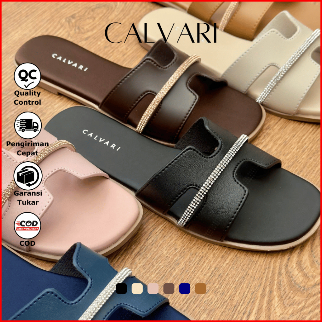 Calvari - Harpy Sandal Wanita Korea Teplek Casual Kekinian Size 36 - 40 Sendal Flat Cewek Kasual