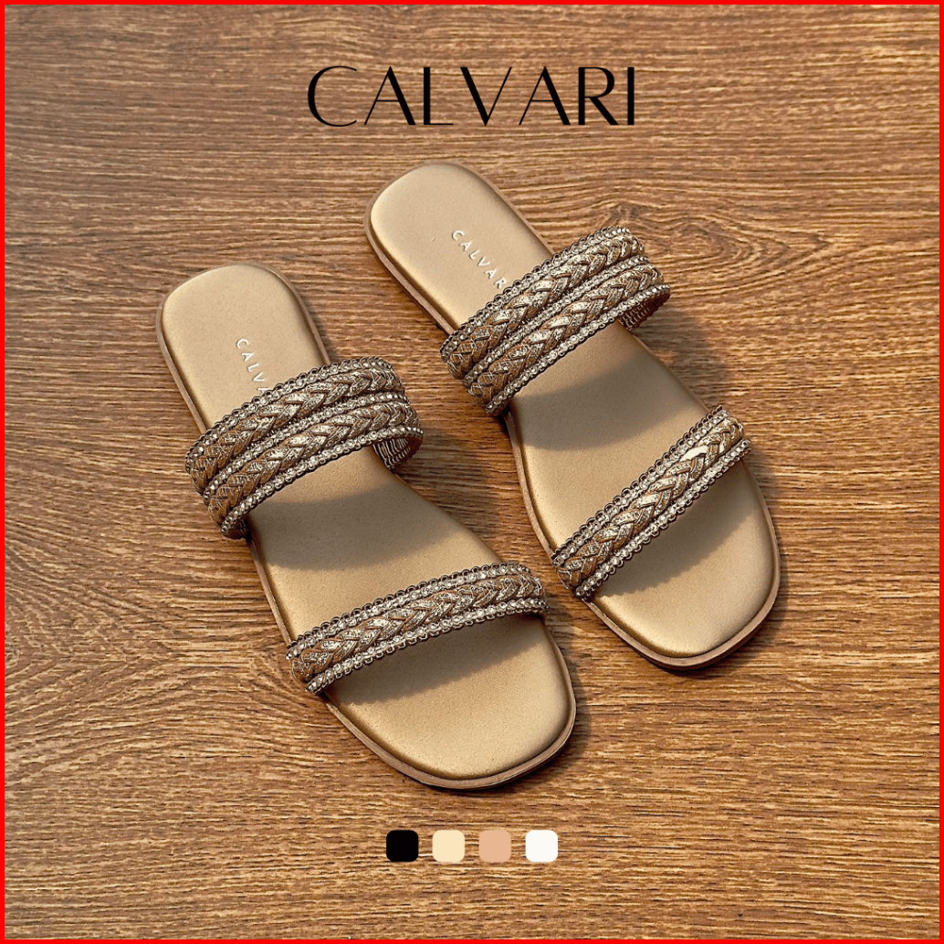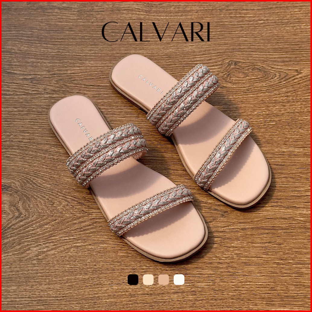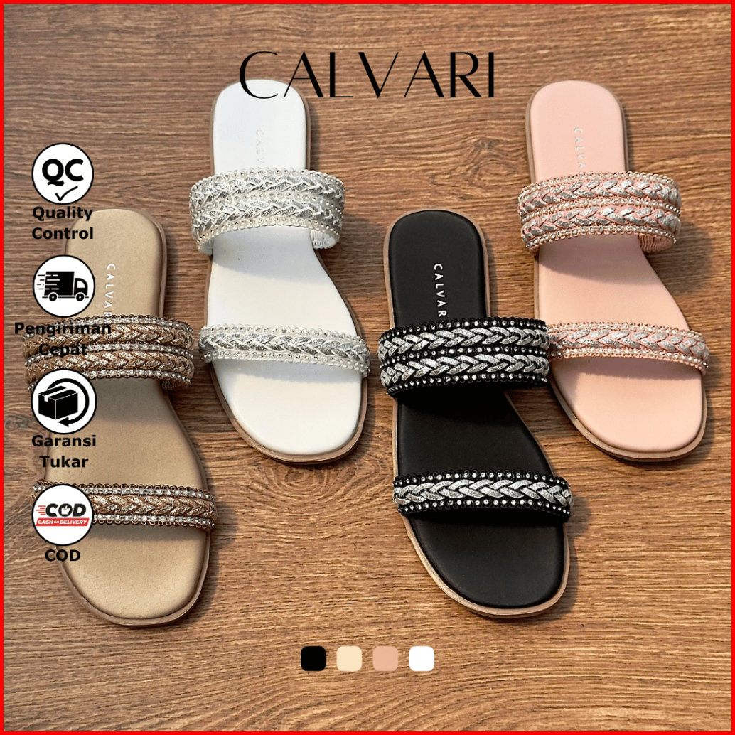 Calvari - Amel Sandal Wanita Korea Teplek Casual Kekinian Size 36 - 40 Sendal Flat Cewek Kasual