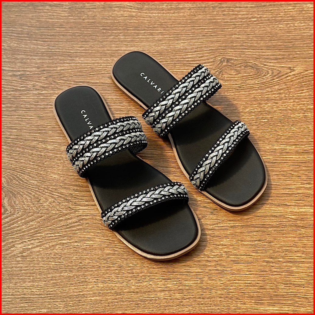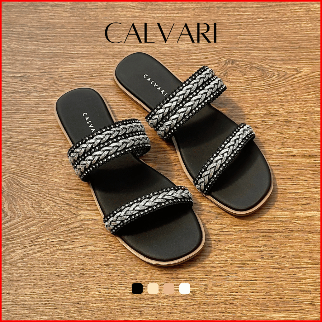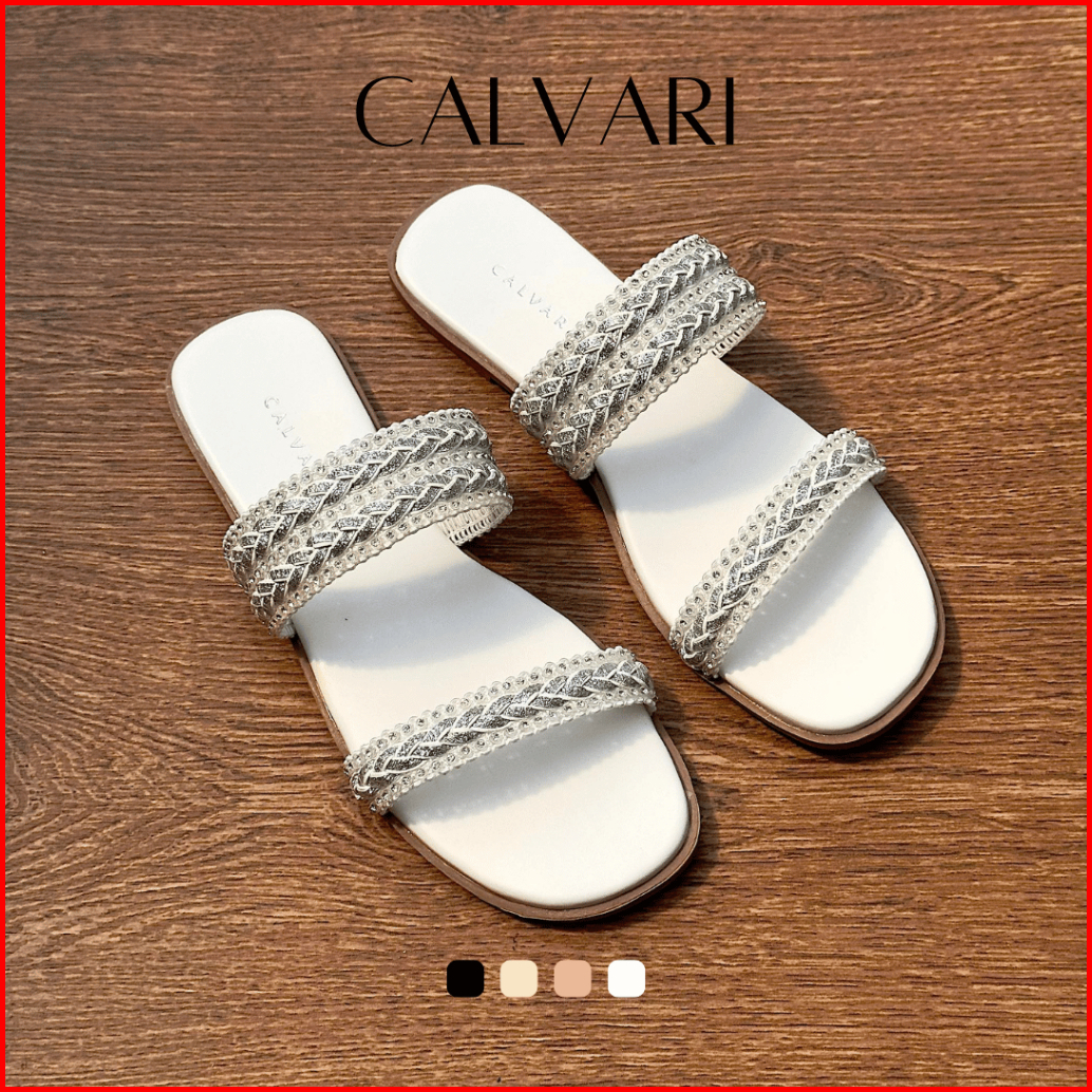 Calvari - Amel Sandal Wanita Korea Teplek Casual Kekinian Size 36 - 40 Sendal Flat Cewek Kasual