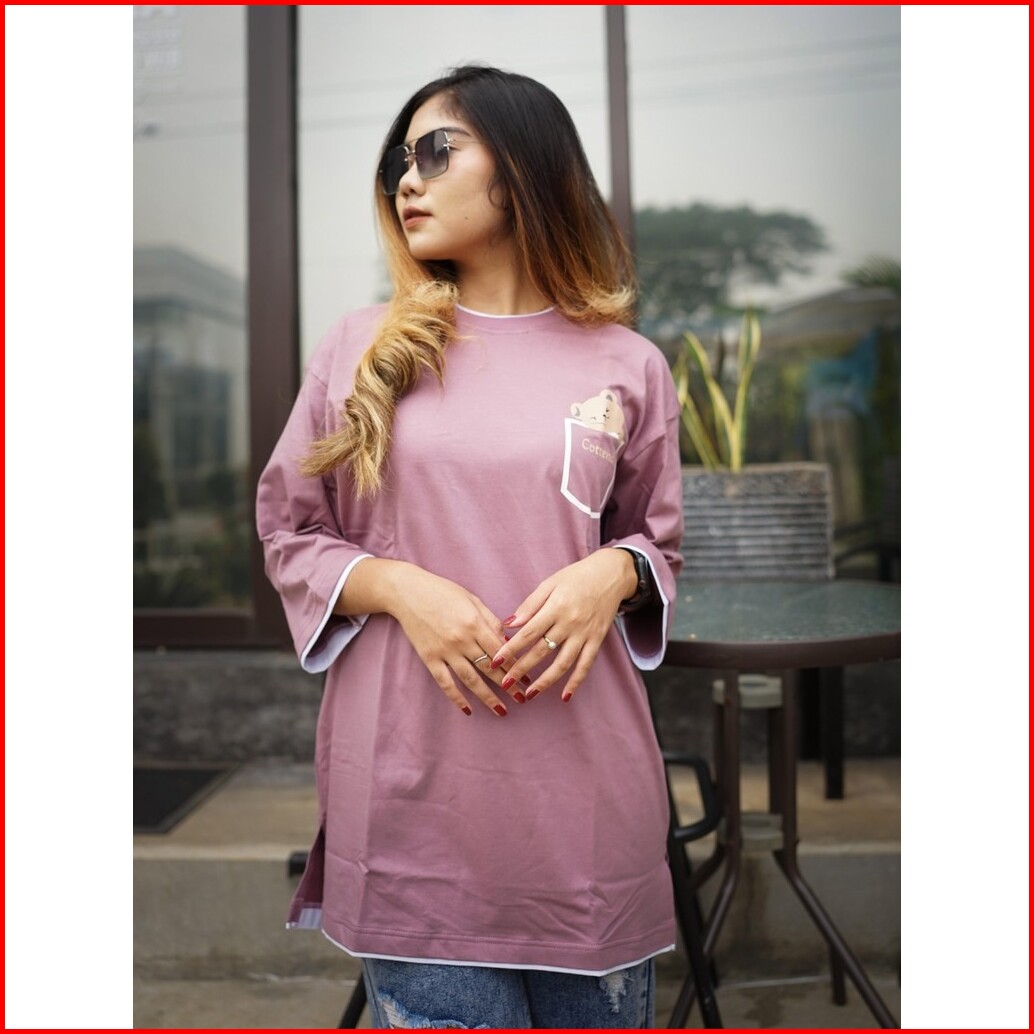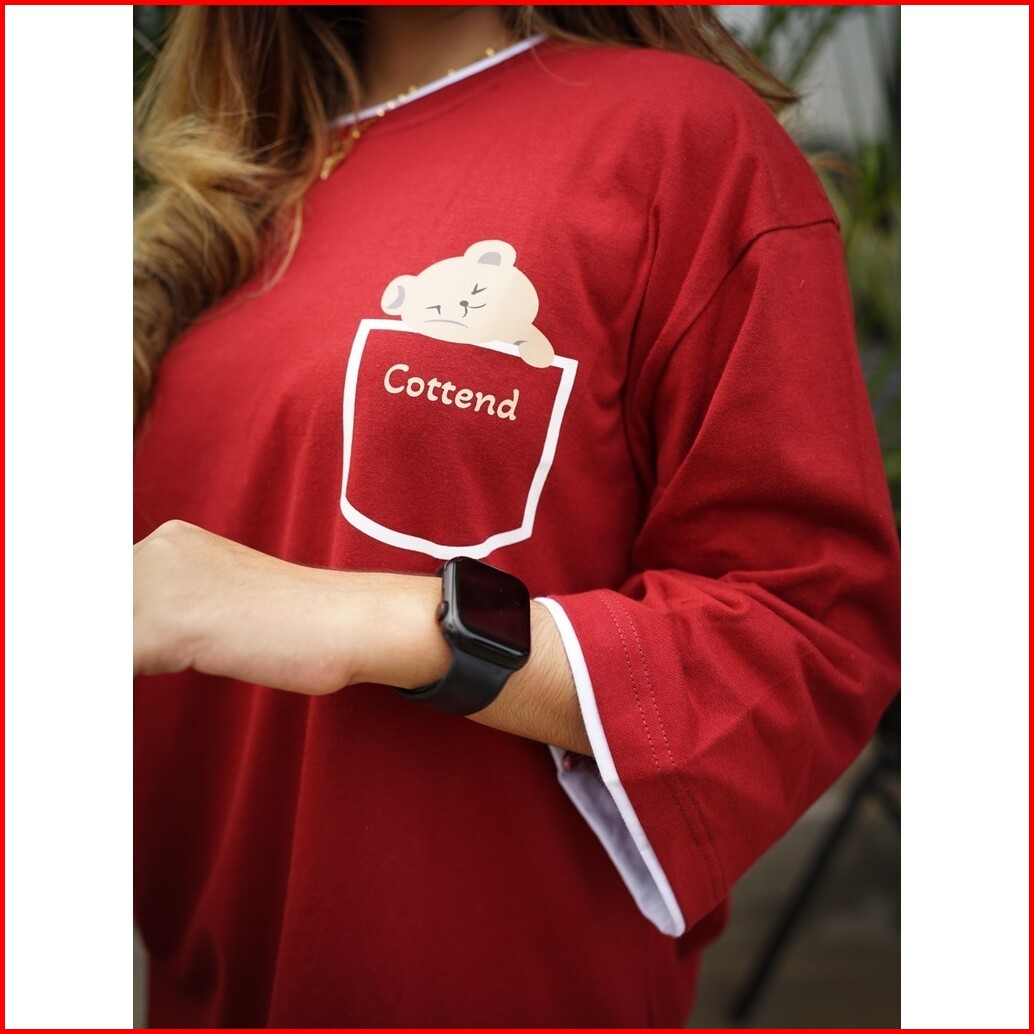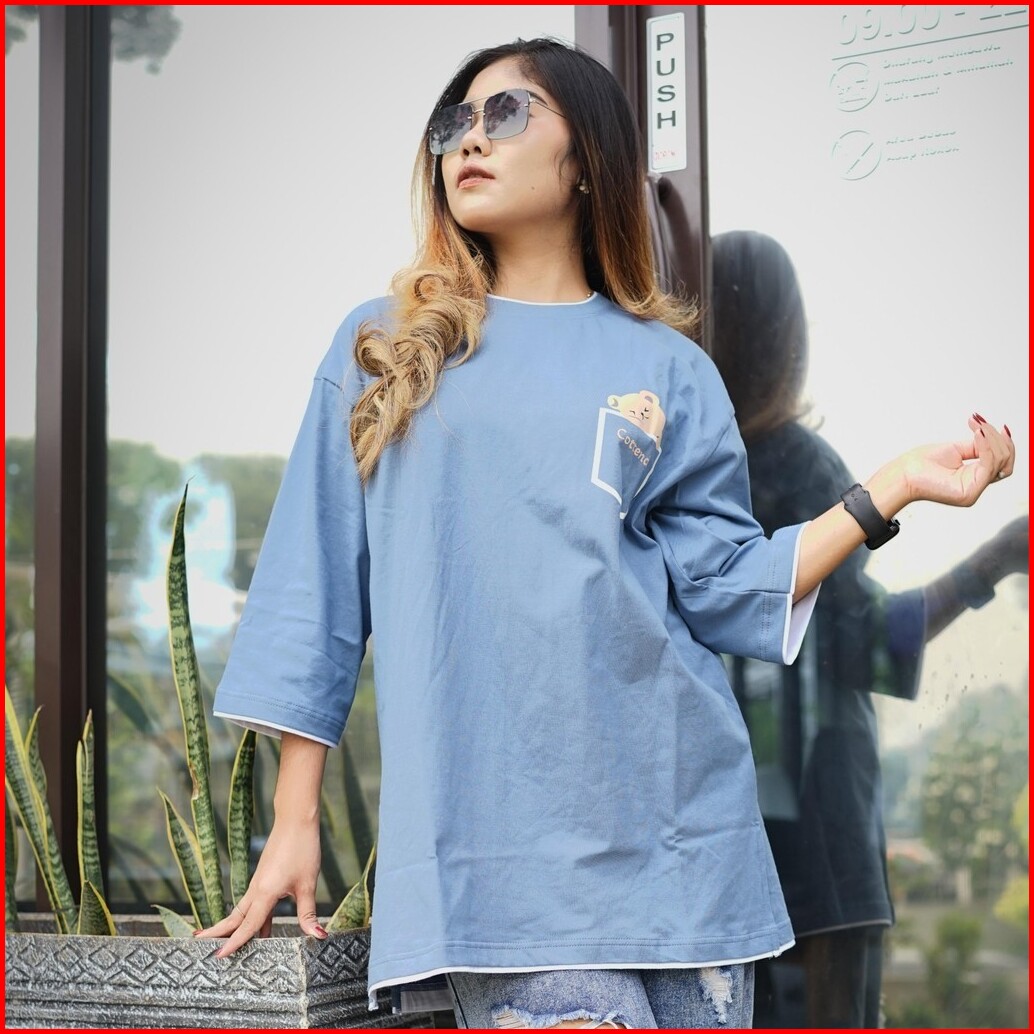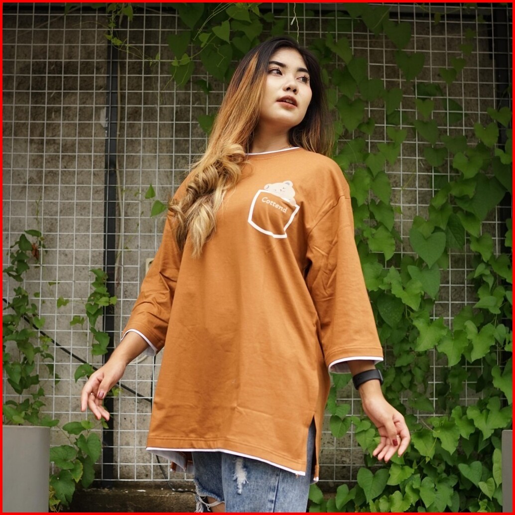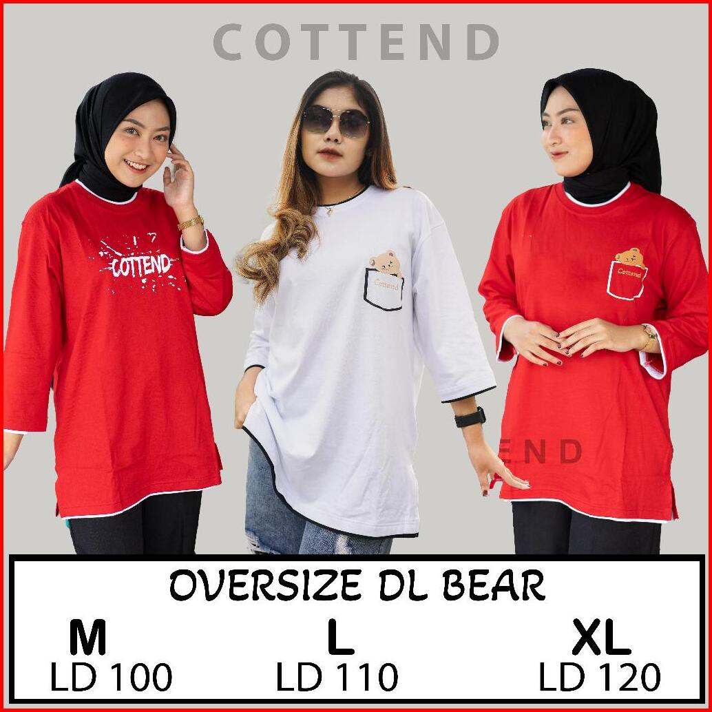 Cottend Oversized Dl Bear Baju Kaos Atasan Wanita Tangan 3 4 Bahan Katun Combed Tebal Adem Dan Nyaman Sehari Hari