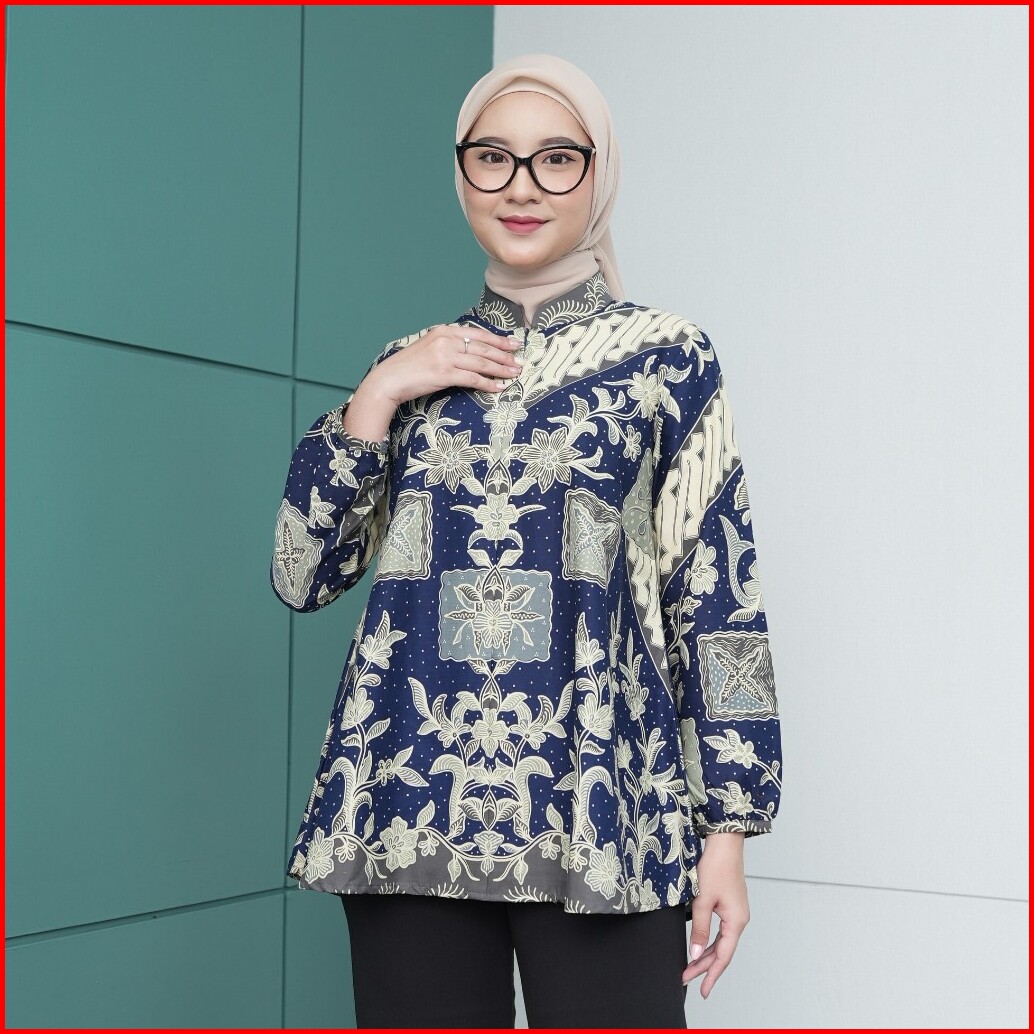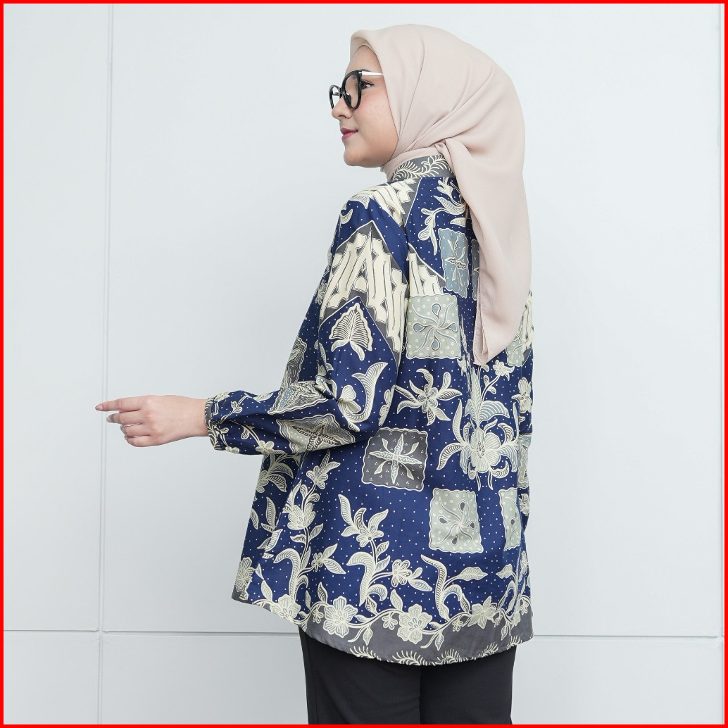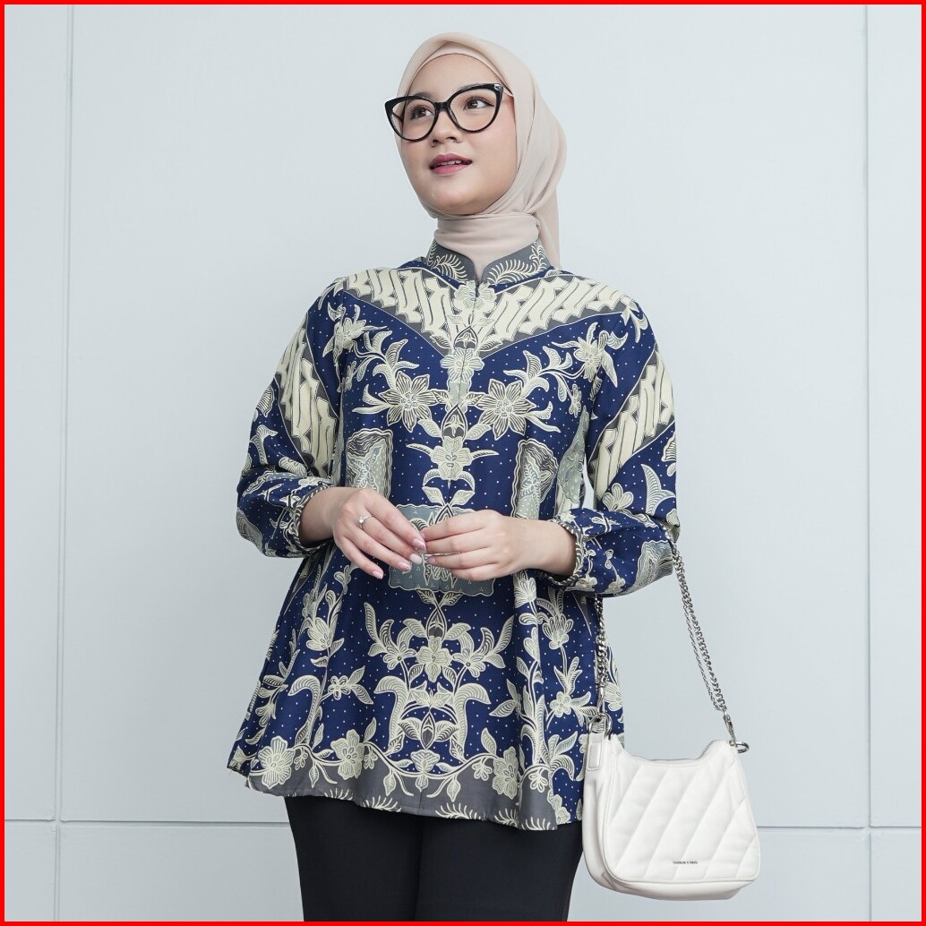 Vina Blouse Baju Batik Atasan Wanita Kerja Premium Modern Terbaru Elegant Katun Resleting Depan