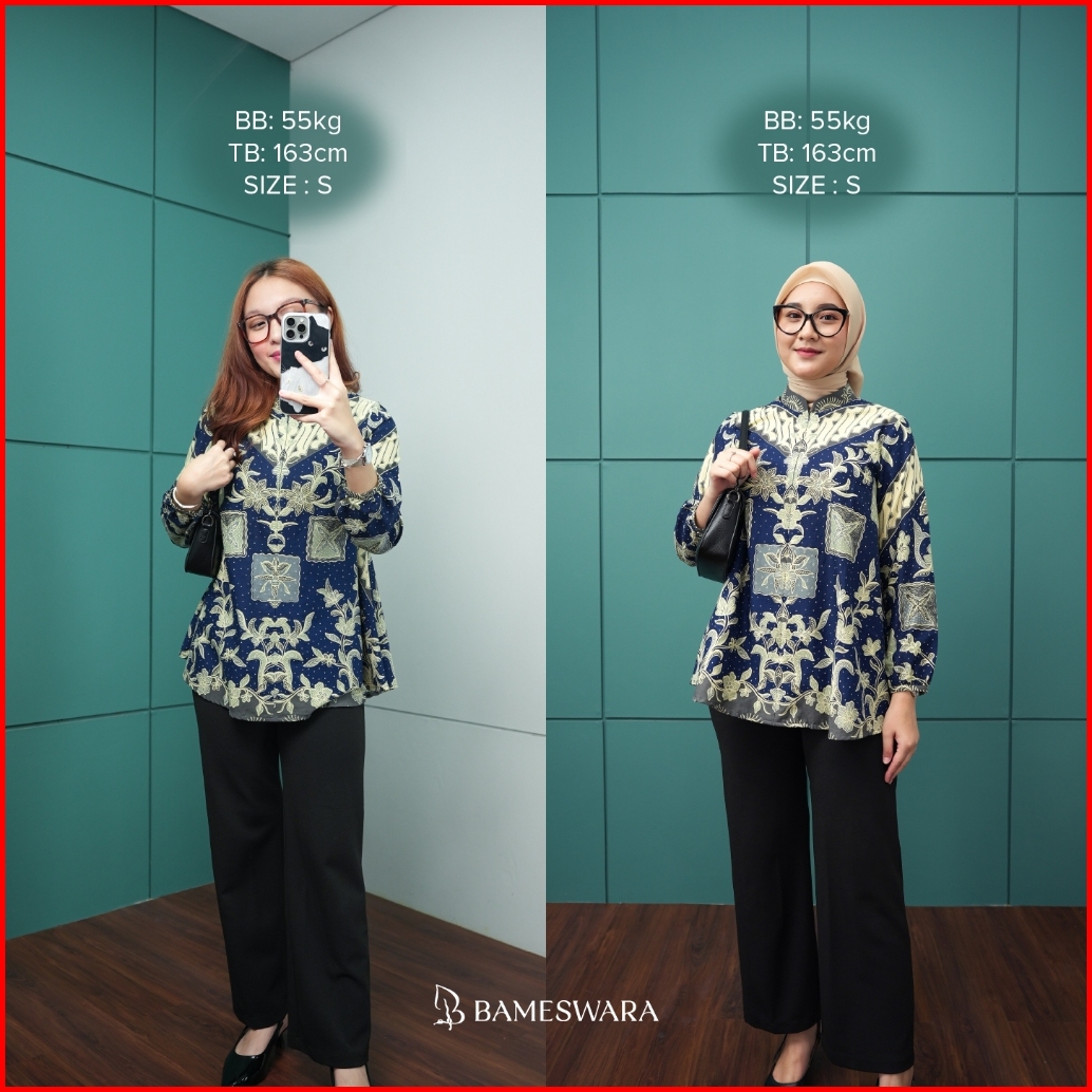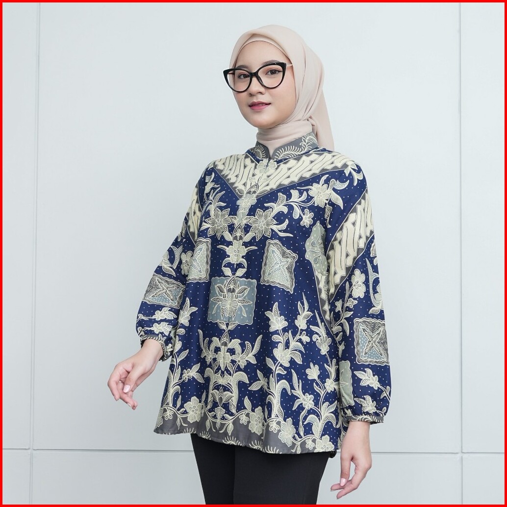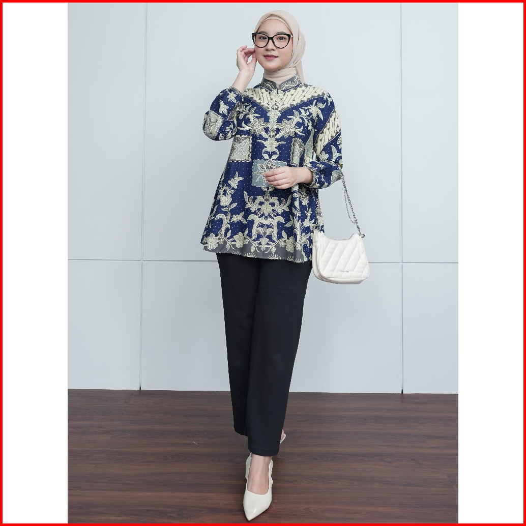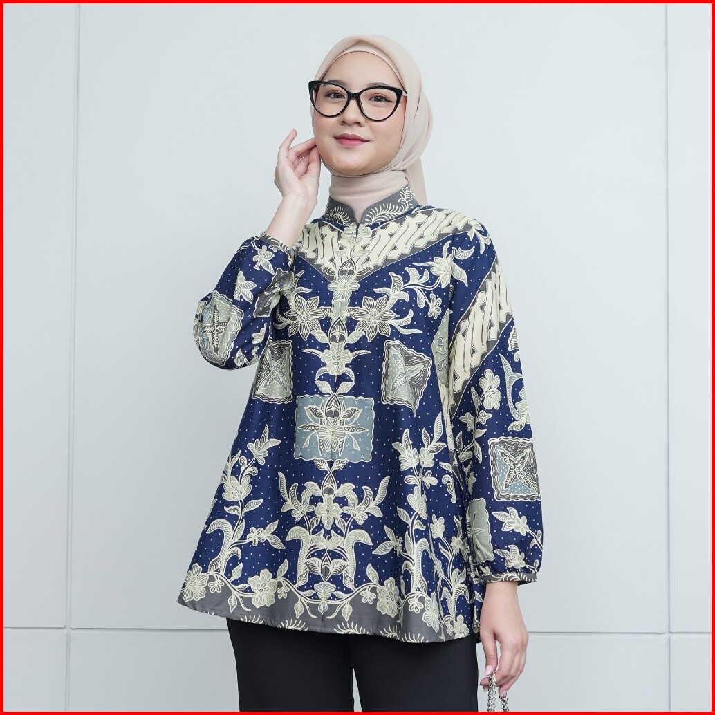 Vina Blouse Baju Batik Atasan Wanita Kerja Premium Modern Terbaru Elegant Katun Resleting Depan