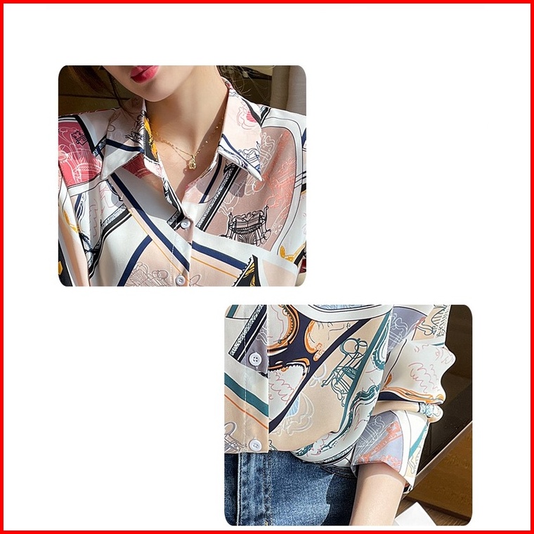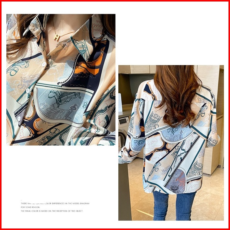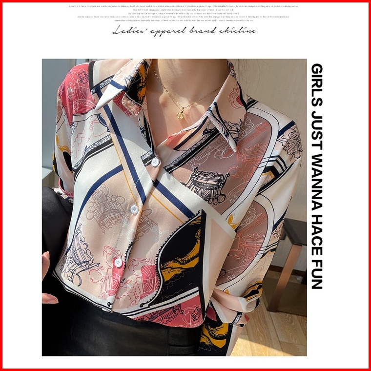 Tianshun Casual Chiffon Printing Work Ol Long Sleeves Shirts Fashion Korean Style Women Blouse Tops