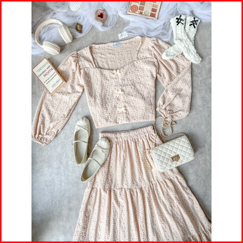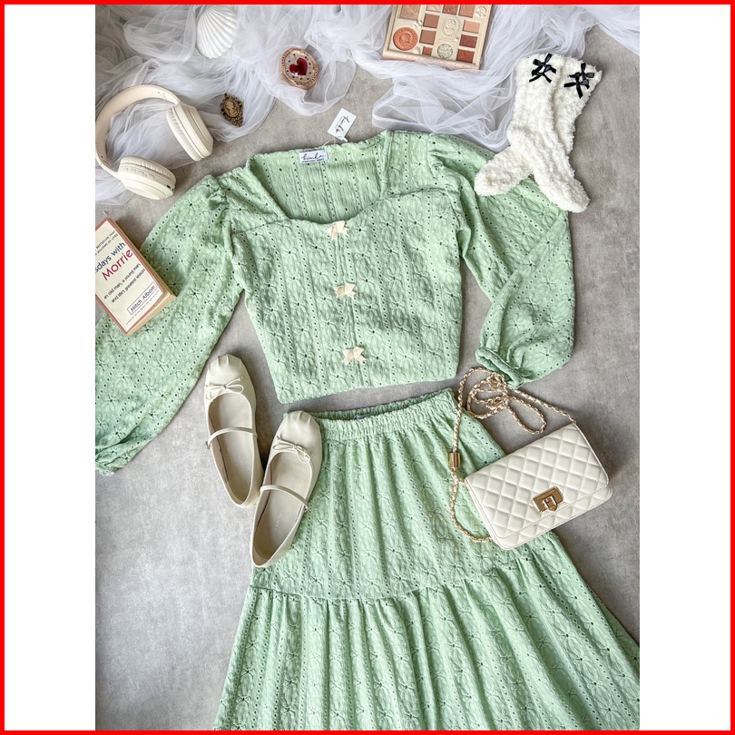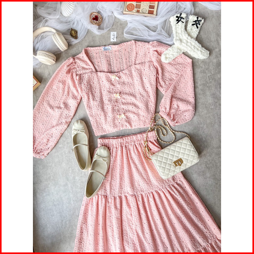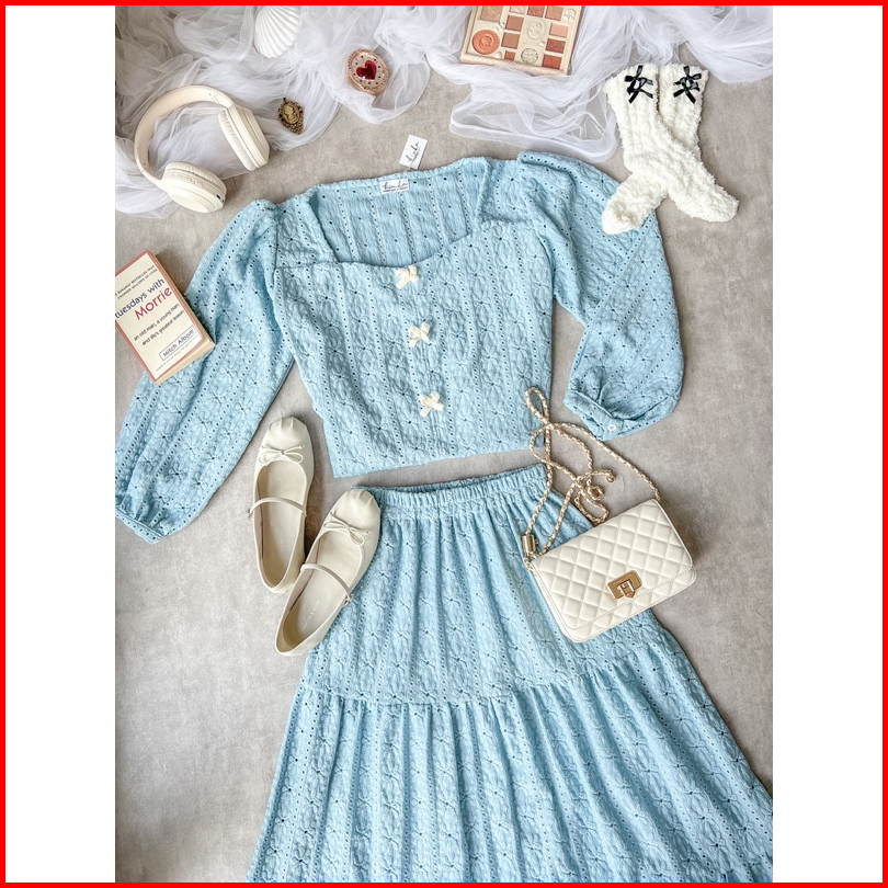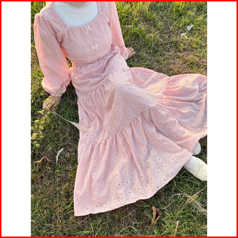 Yuka Oneset By Kimka Hijab Setelan Cantik Wanita Blouse Dan Rok Korean Style Setelan Kantun Bordir Casual Nyaman