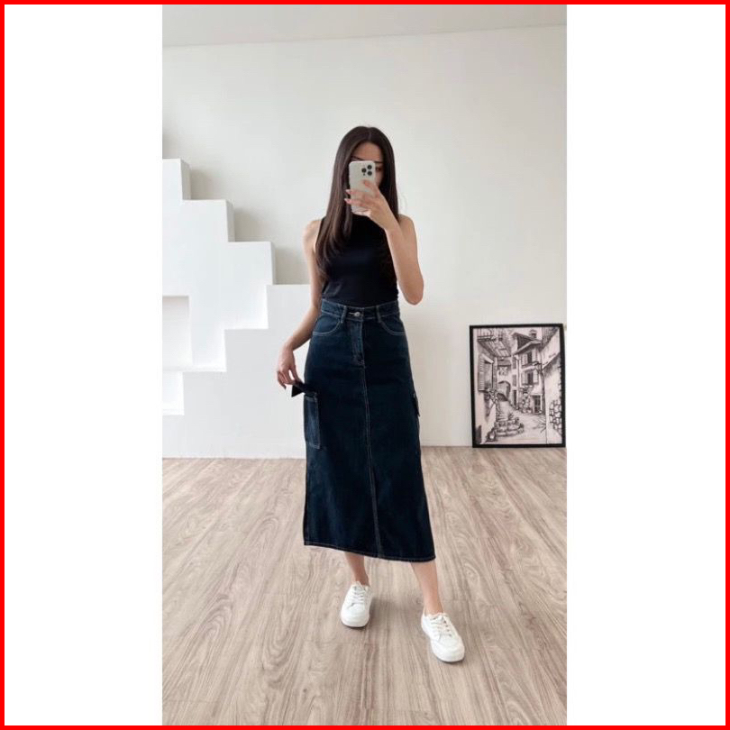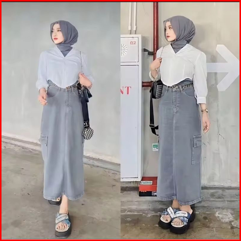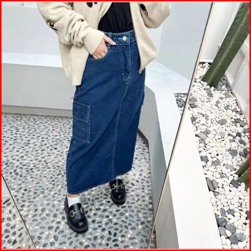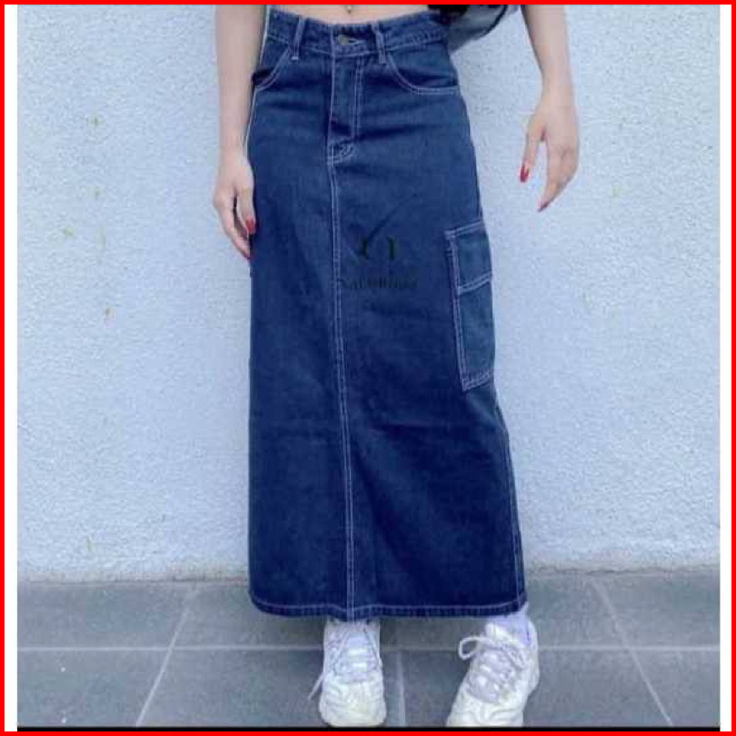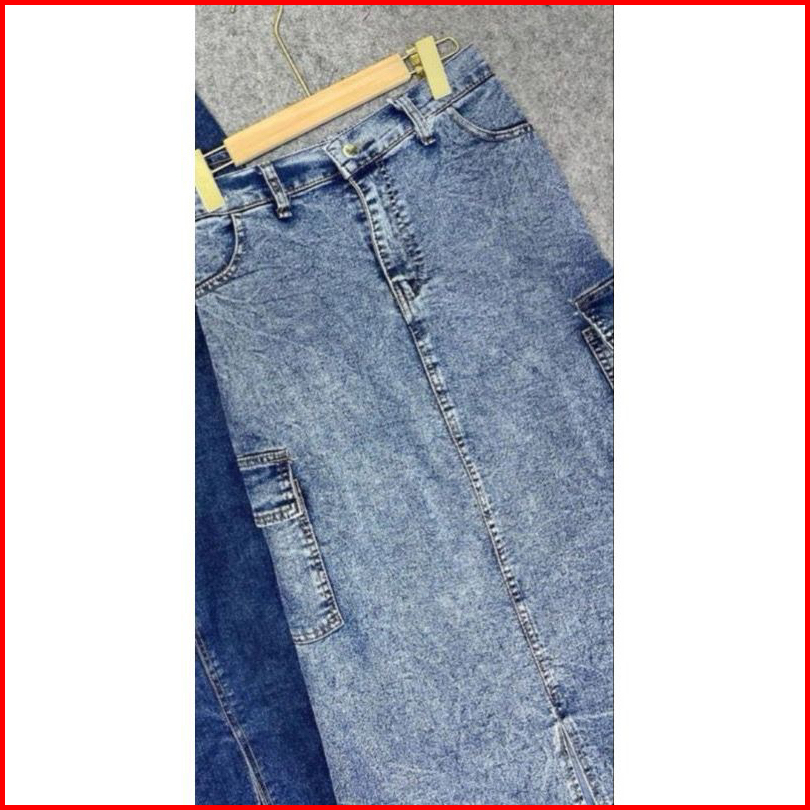 Rok Jeans Cargo Wanita Melar Premium Streth S-m-l-xl-xxl