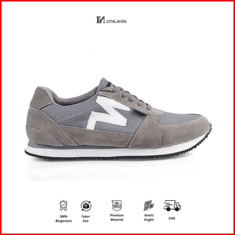 Lvnlaven - Sepatu Pria Casual Sneakers Simple Kece Ringan Warna Abu Hitam Nevy Bahan Kulit Suede R 024 Size 38-47