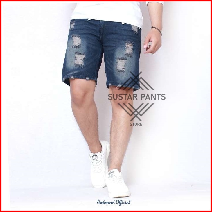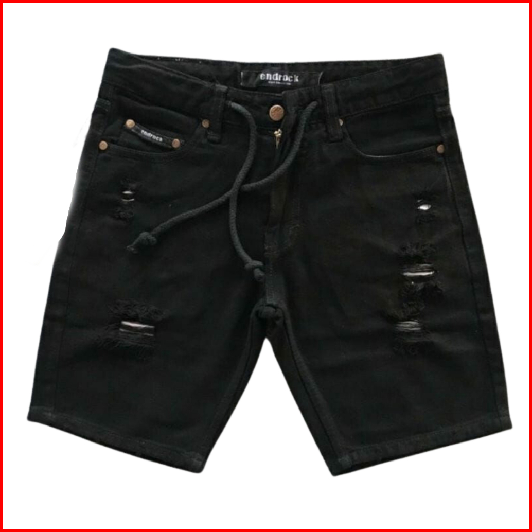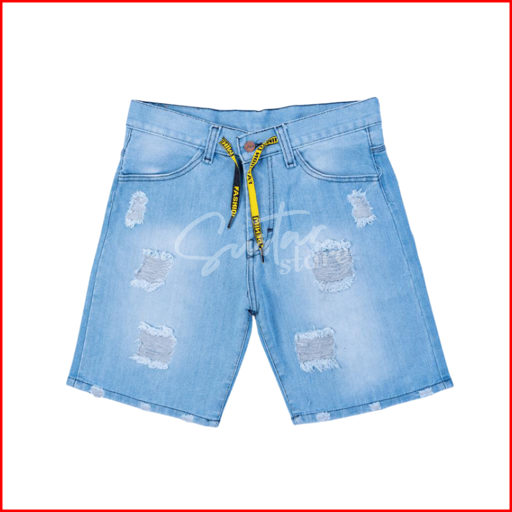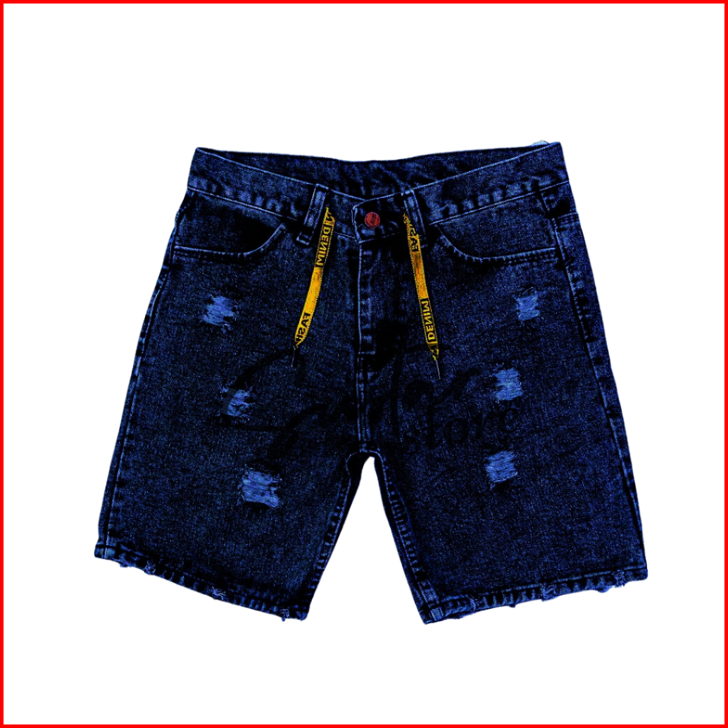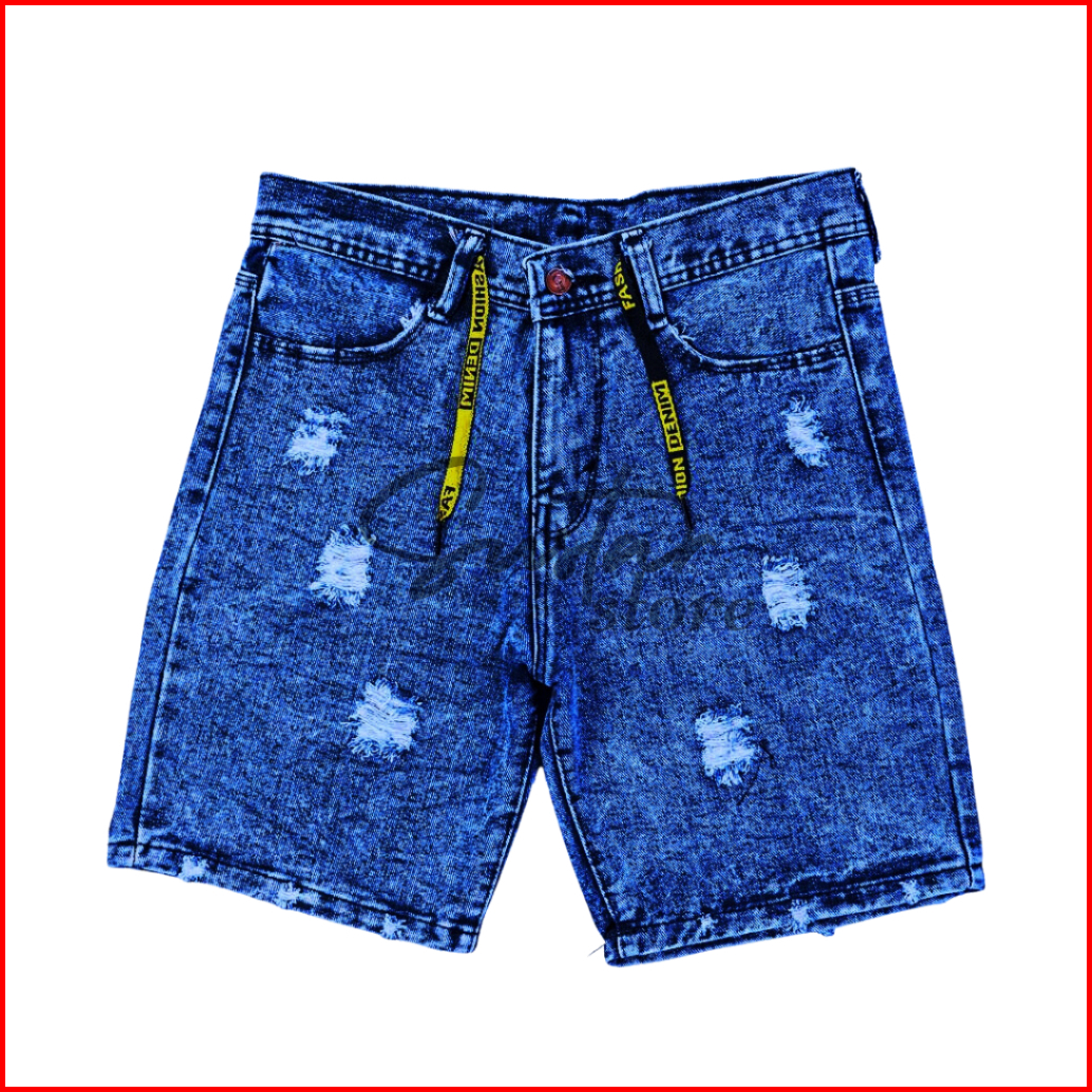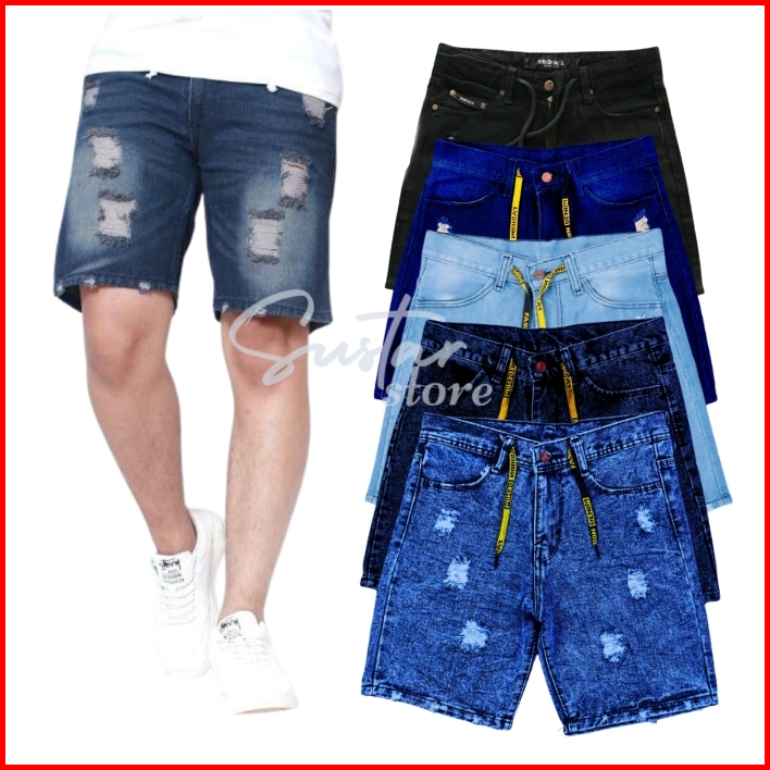 Celana Jeans Sobek Wisker Ripped Pendek Pria Retro