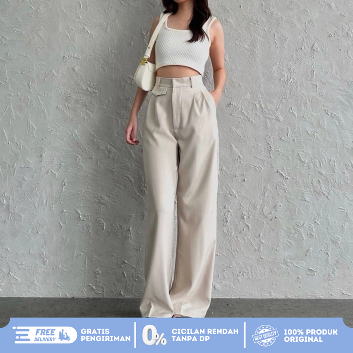 Celana Kulot Wanita Highwaist Panjang Anti Kusut Korean Style Celana Kerja Wanita Loose Pants Trouser Basic