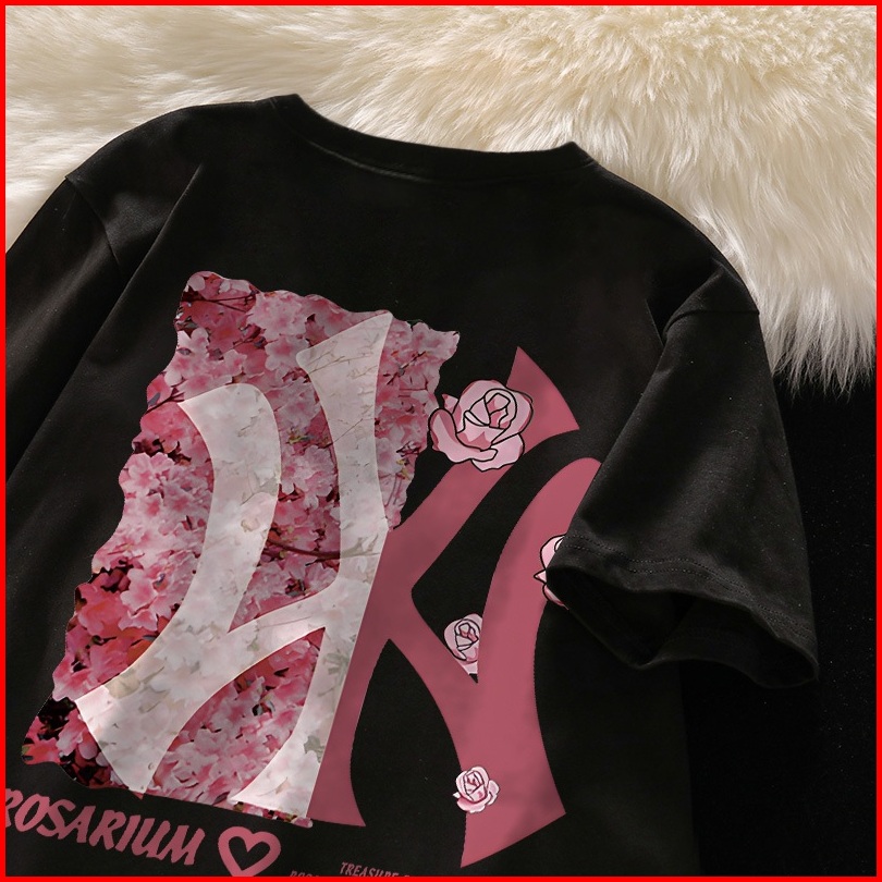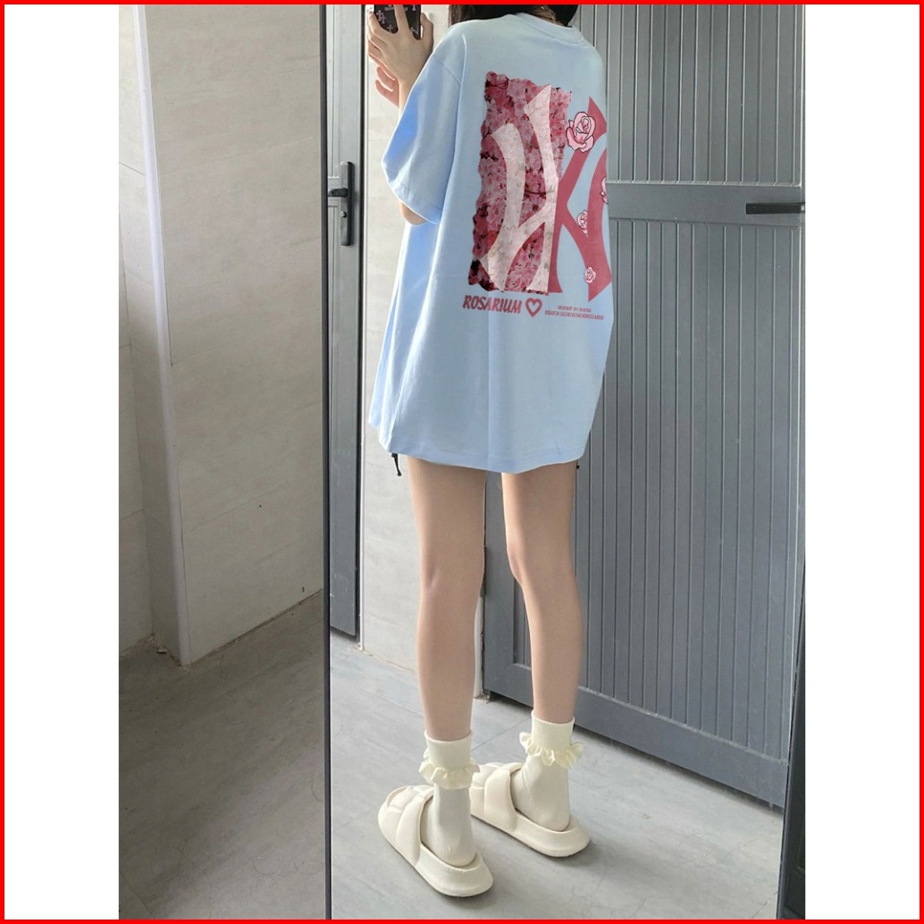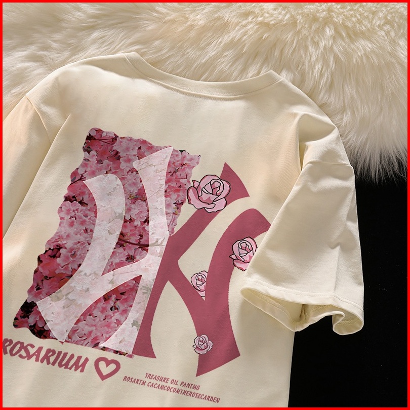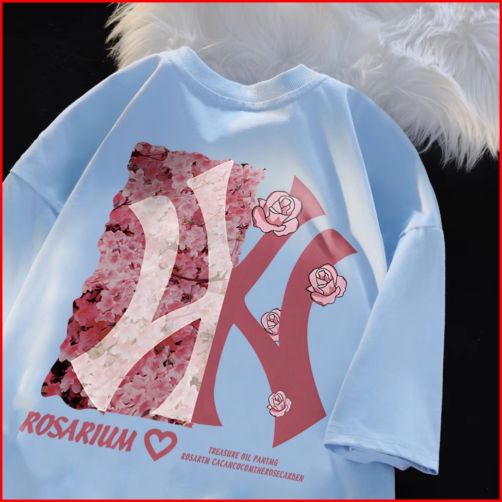 Po Floret Biru Kaos Oversize Lengan Pendek Pink Rose Wy Print Katun Murni Fashion Style Wanita Baju Atasan Wanita Terbar