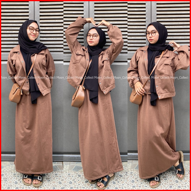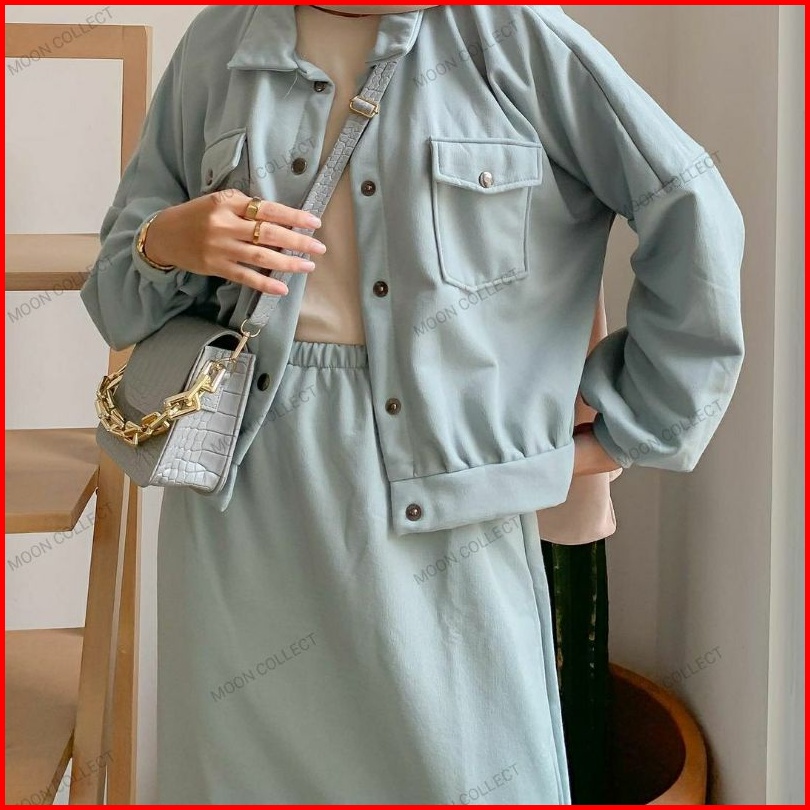 One Set Outwear Bomber Jacket Rok Skirt Big Size Xl Moon Collect Set Wanita Setelan Wanita Jaket Wanita Jaket Bomber One