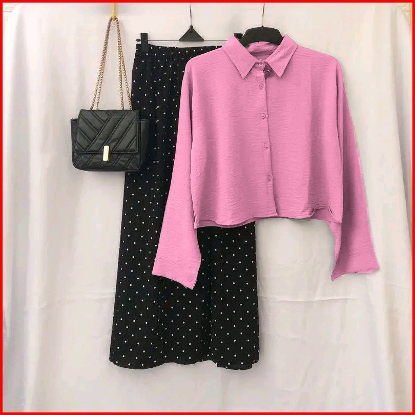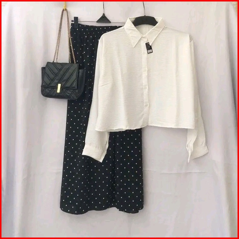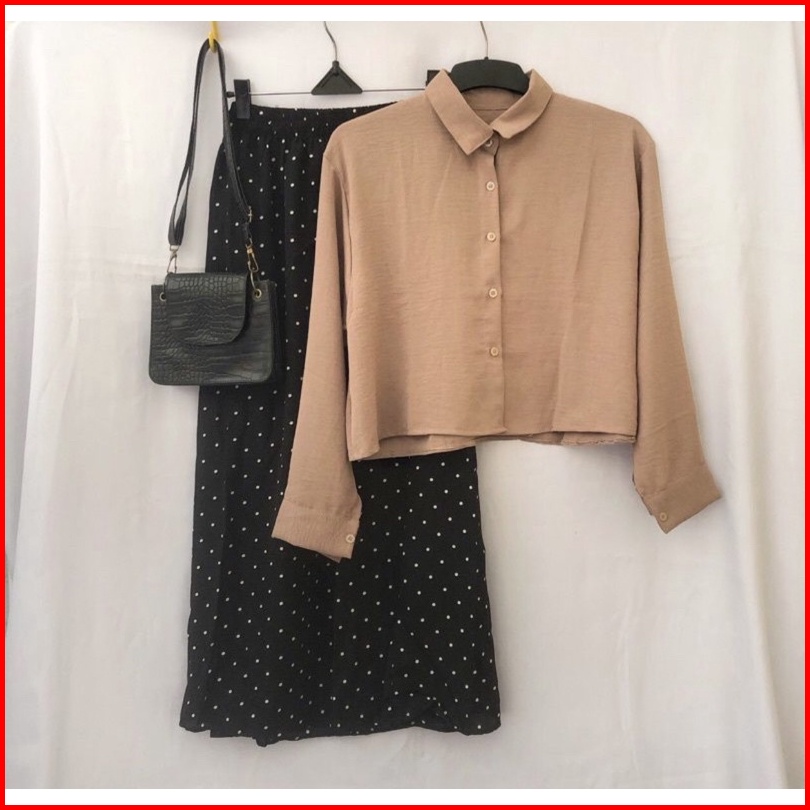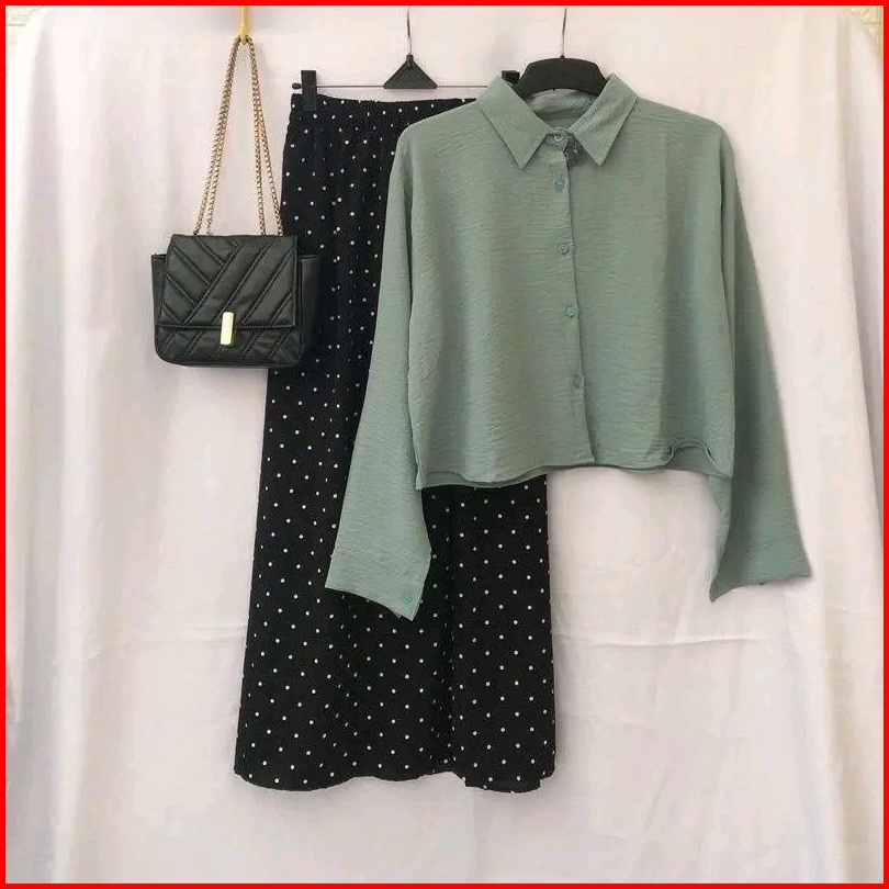 One Set Hanin Crinkle Crop Rok Polka Terbaru