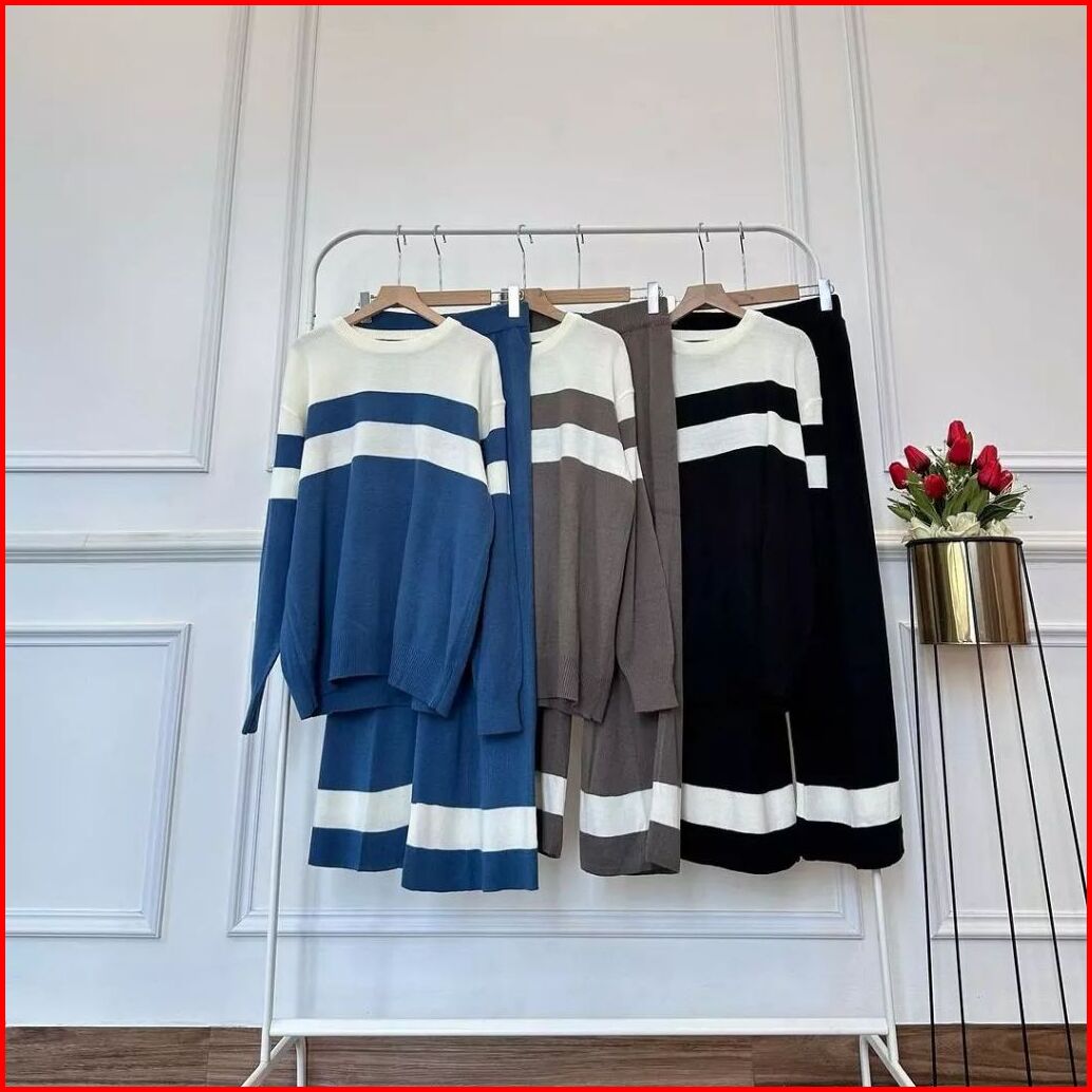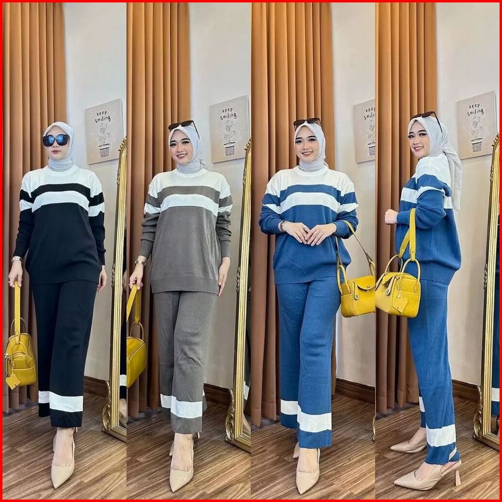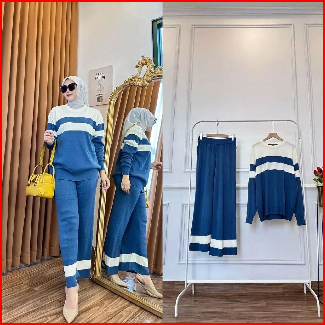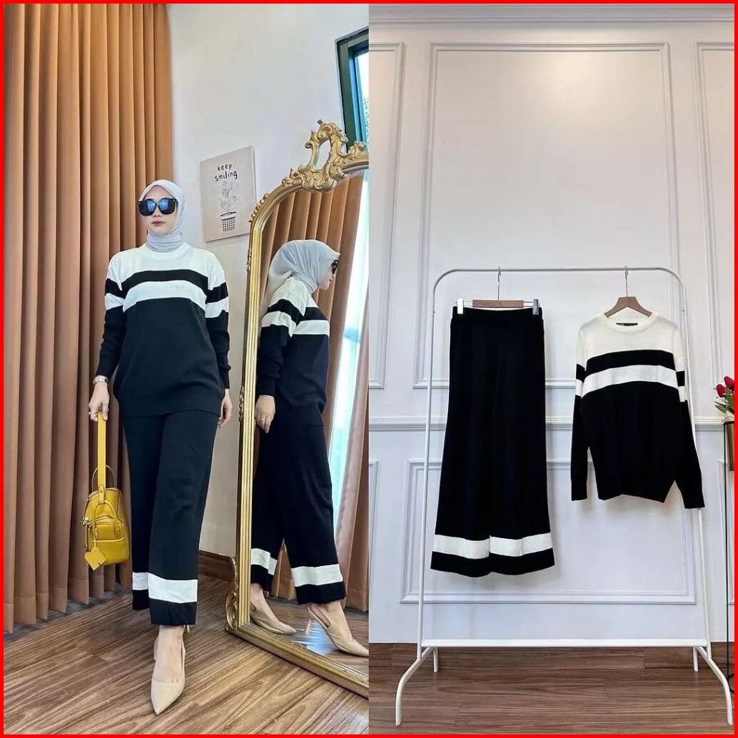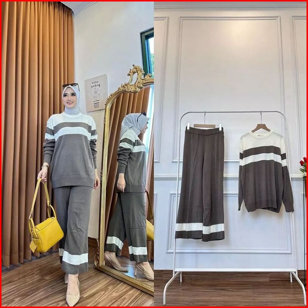 Raisha Set 2in1 Bahan Knit Setelan Wanita Kekinian One Set Blouse Korean Style Dan Celana Wanita Elf