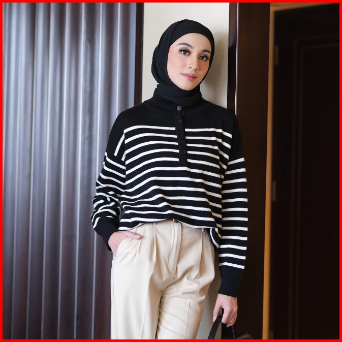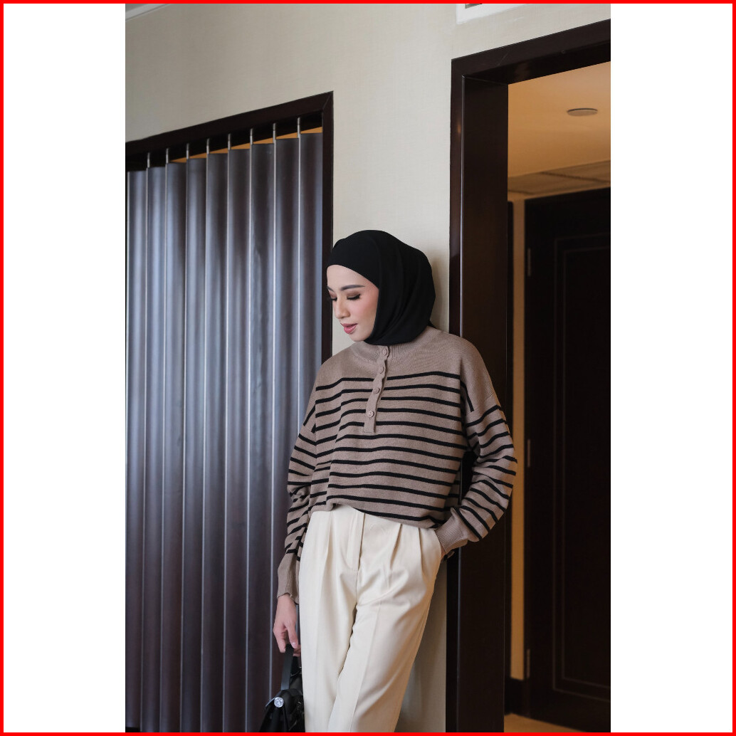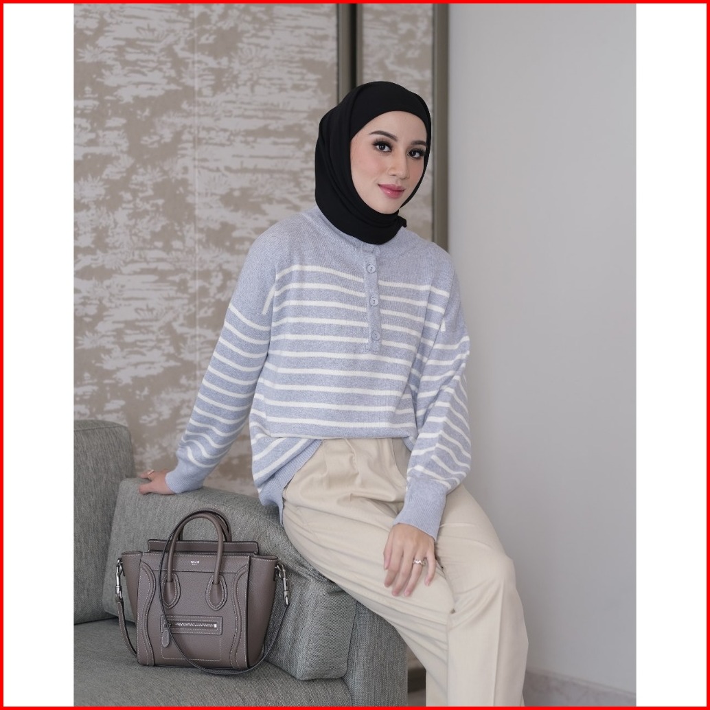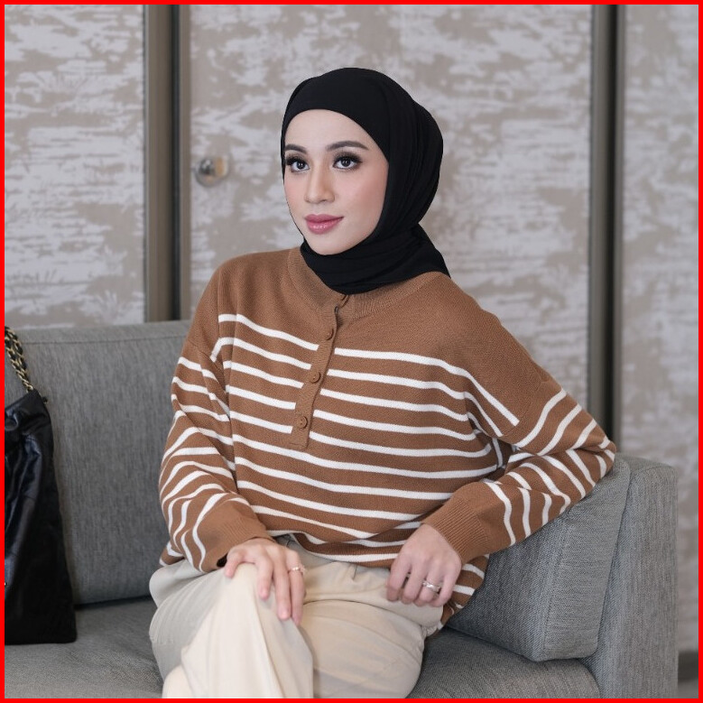 Gonegani - Sweater Wanita Stripe Berkancing Jiro Sweater