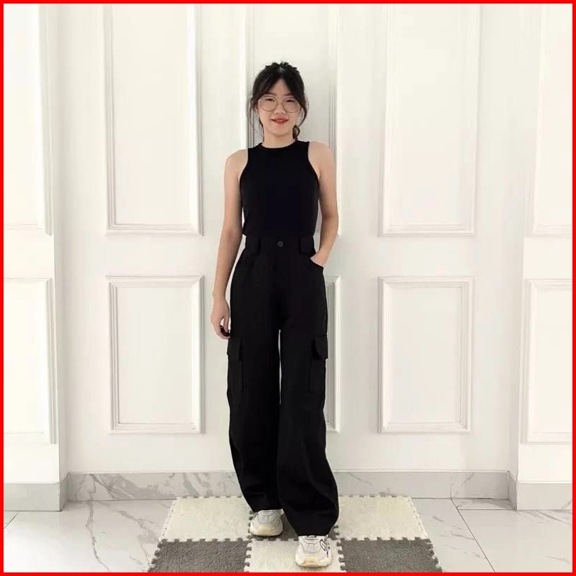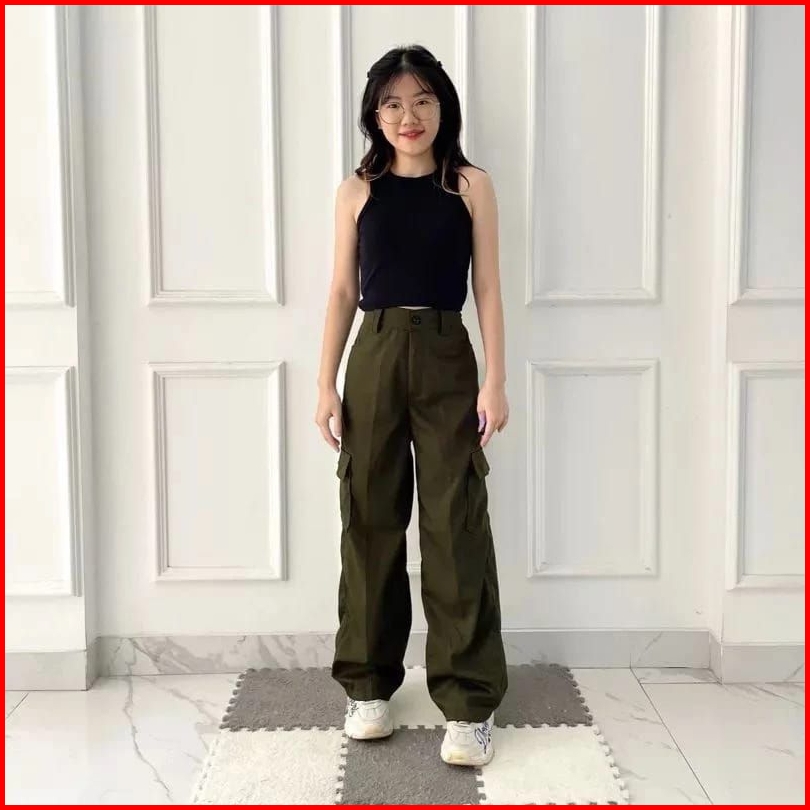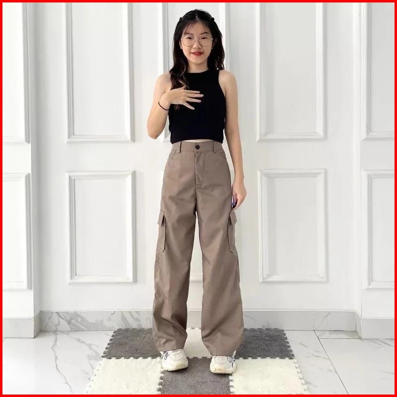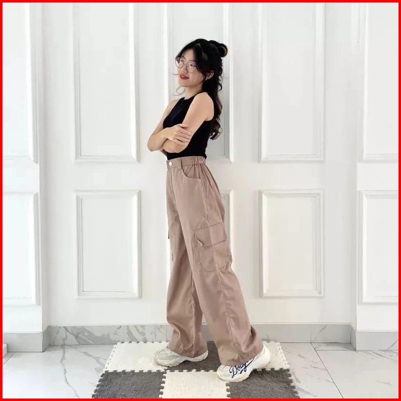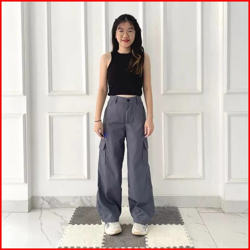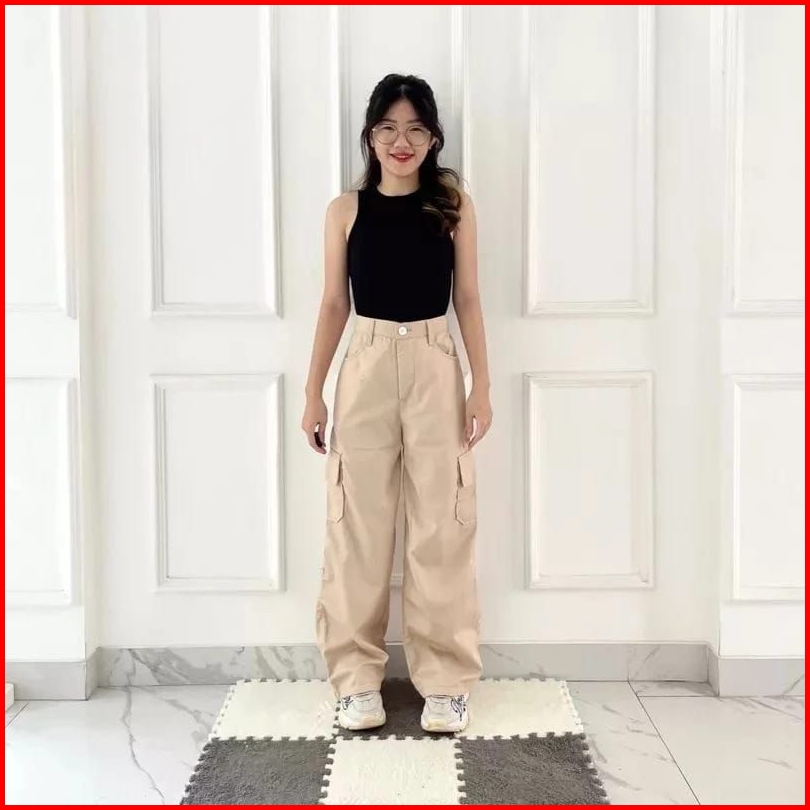 Celana Cargo Pants Wanita - Highwaist Loose Cargo - Celana Cargo Wanita
