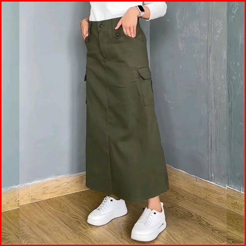 Rok Cargo Skirt Wanita Panjang Katun Twill Rok Cargo Korean Style Wanita Standar Jumbo Kekiniann
