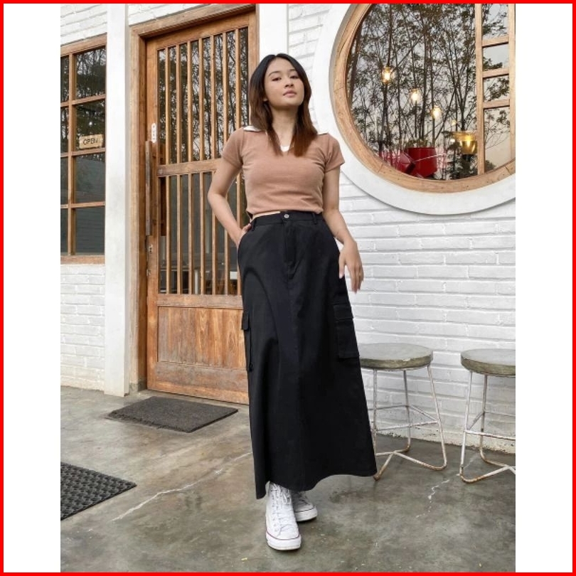 Rok Cargo A-line Bahan Katun Premium Rok Korean Style Kekinian Rok Cargo Wanita Jumbo