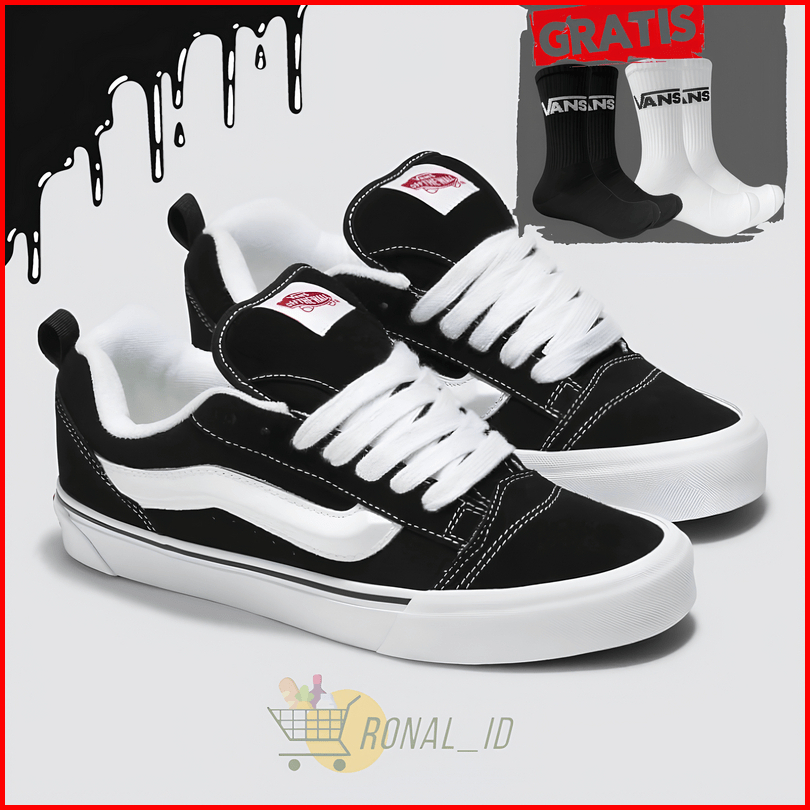 Vans Knu Skool Black And White Sneakers For Men And Women Original 100