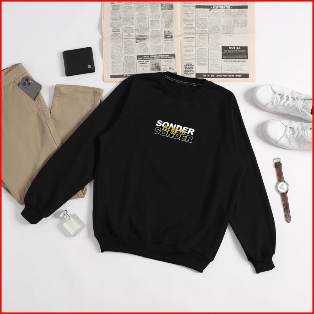 Crewneck Black Motif Simpel Pria Dan Wanita Premium Quality Brand Lokal Distro Bandung