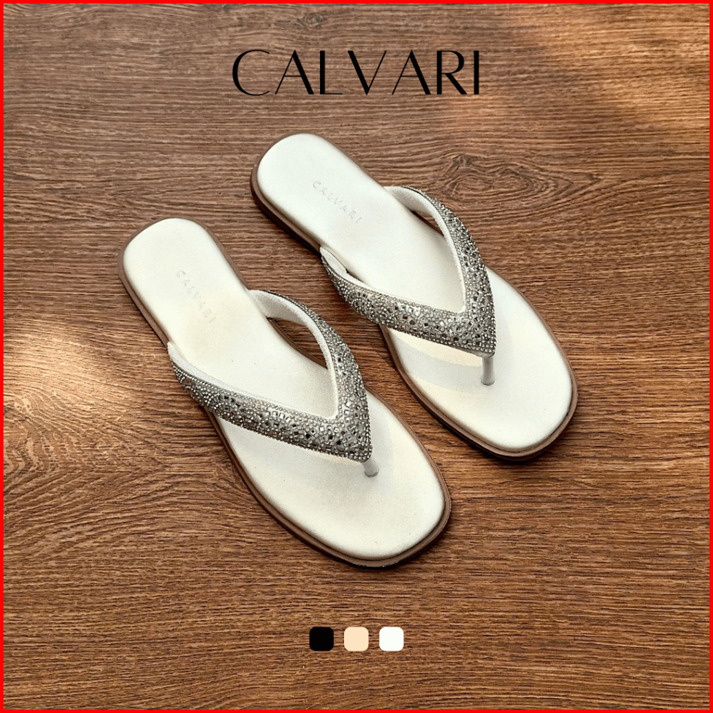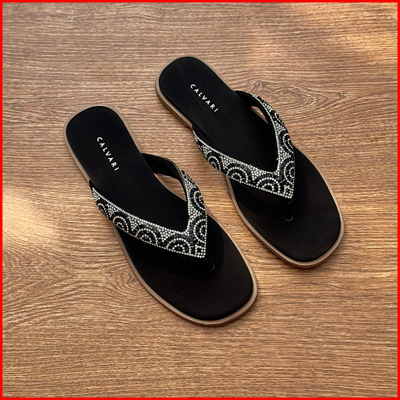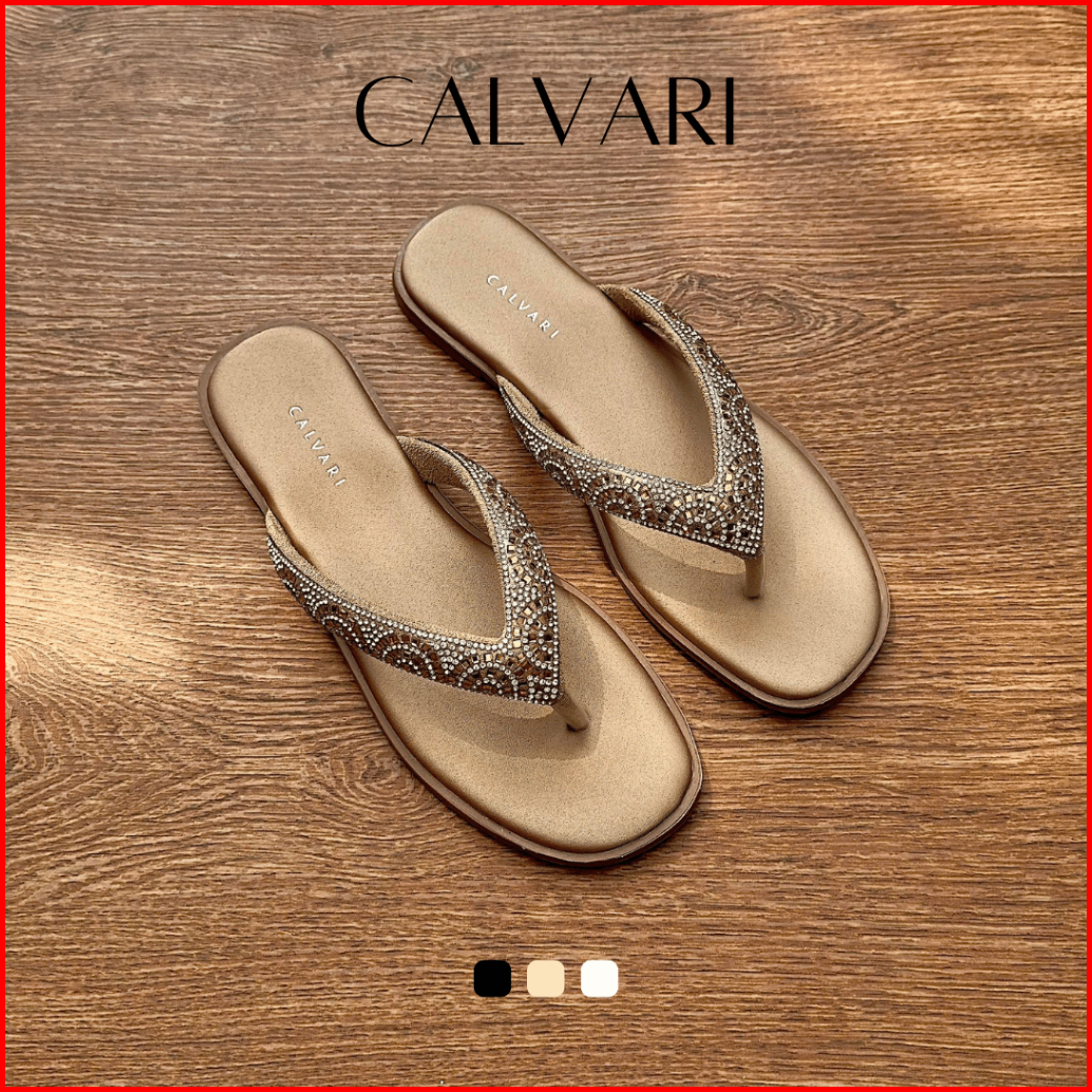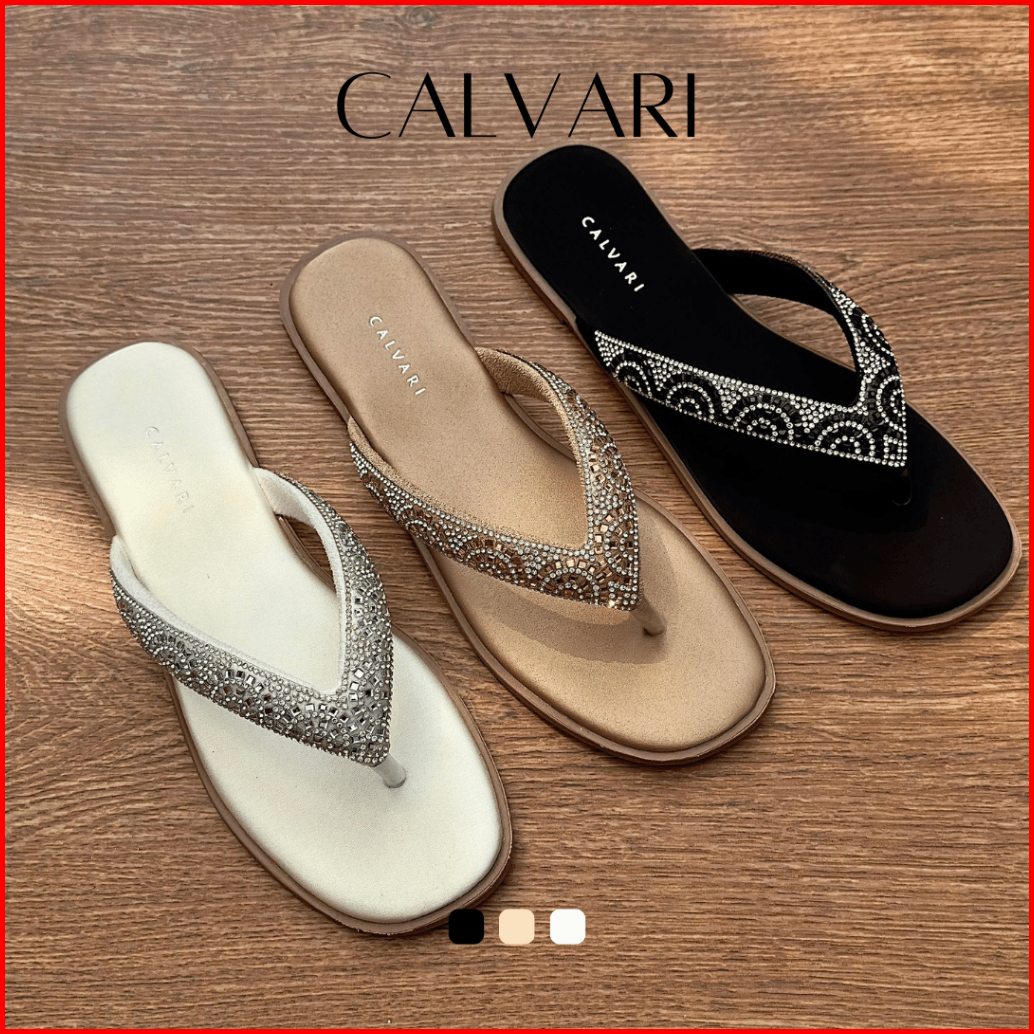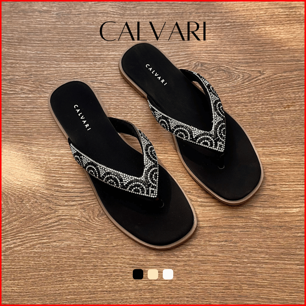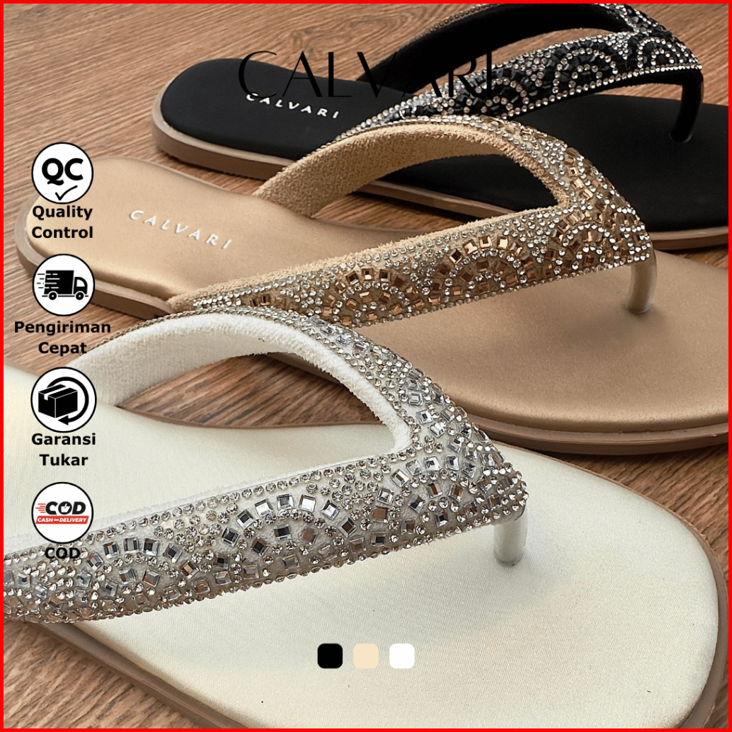 Calvari - Luna Sandal Wanita Korea Teplek Casual Kekinian Size 36 - 40 Sendal Flat Cewek Kasual