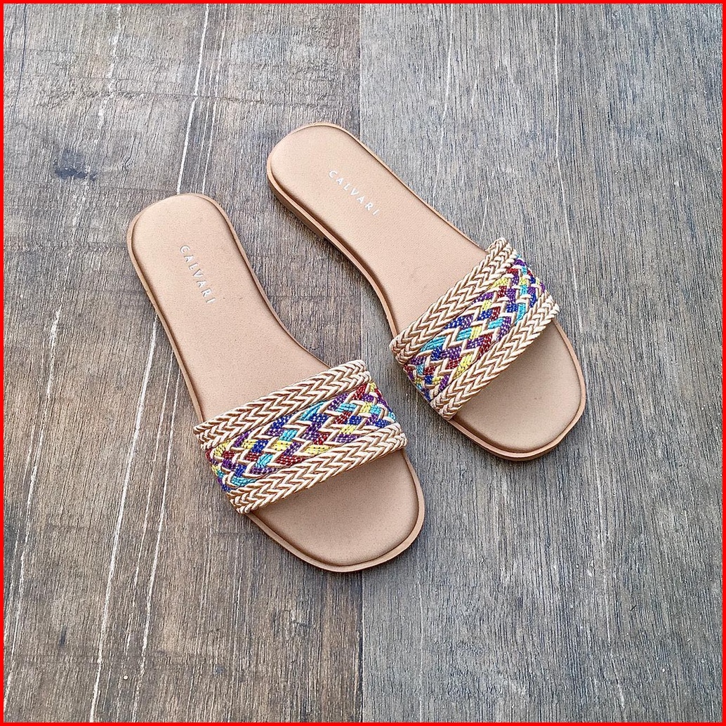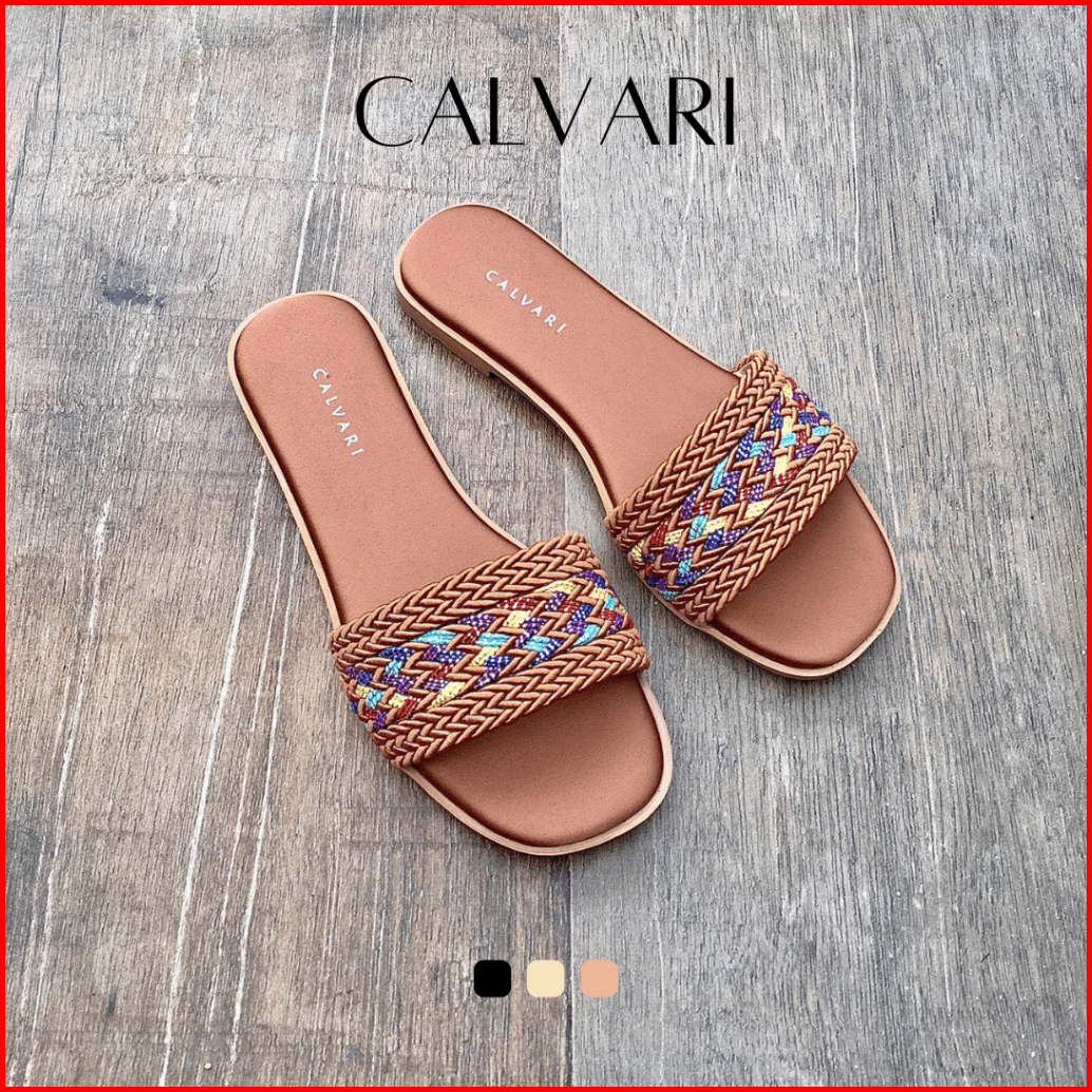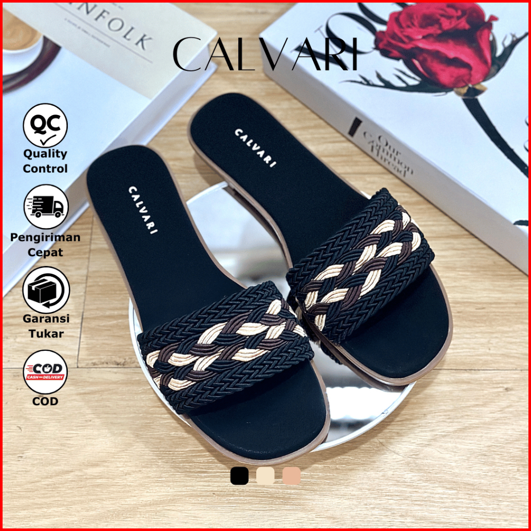 Calvari - Cvr05 Sandal Wanita Korea Teplek Casual Kekinian Size 36 - 40 Sendal Flat Cewek Kasual