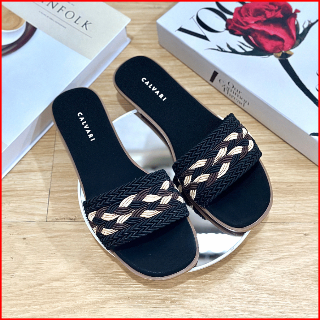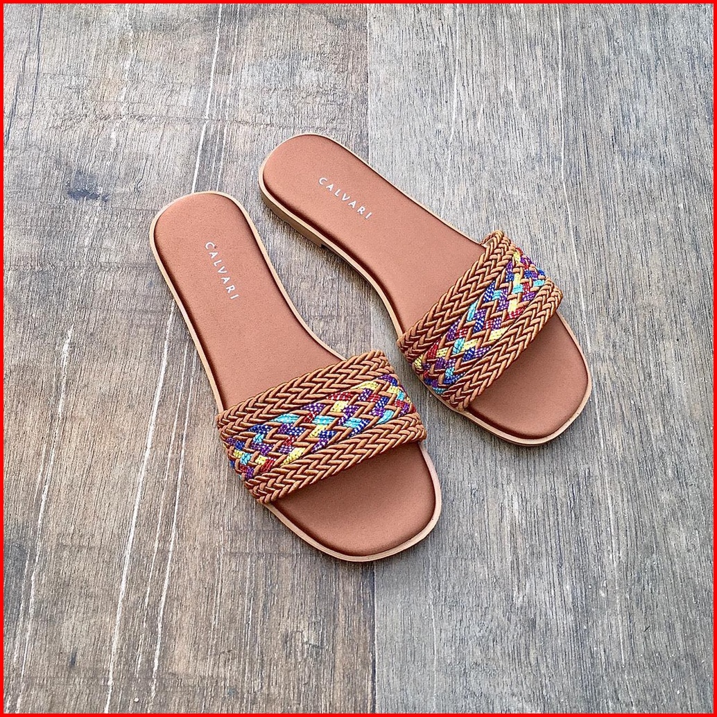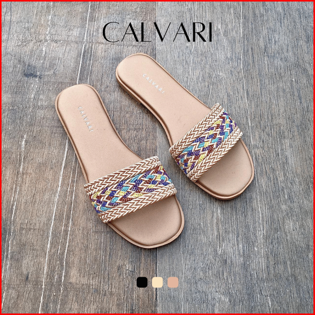 Calvari - Cvr05 Sandal Wanita Korea Teplek Casual Kekinian Size 36 - 40 Sendal Flat Cewek Kasual