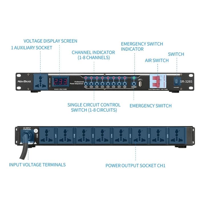 power manager NEW BAXS SR-328S Colokan Listrik 40 amp power controller 8-channel audio time system power is applicable t