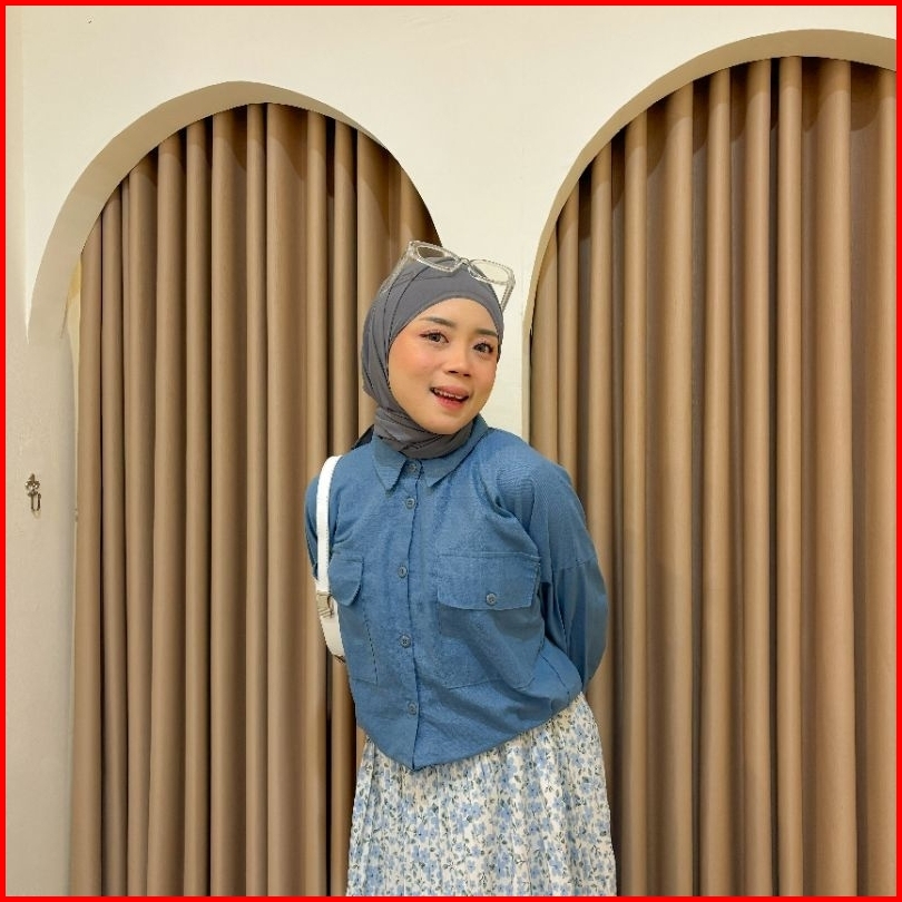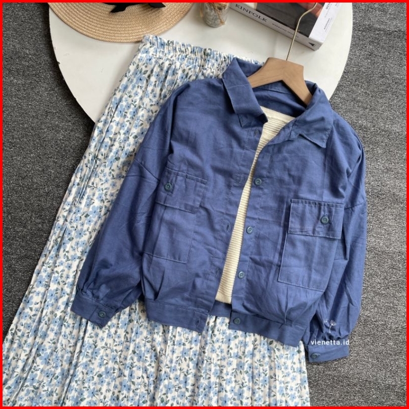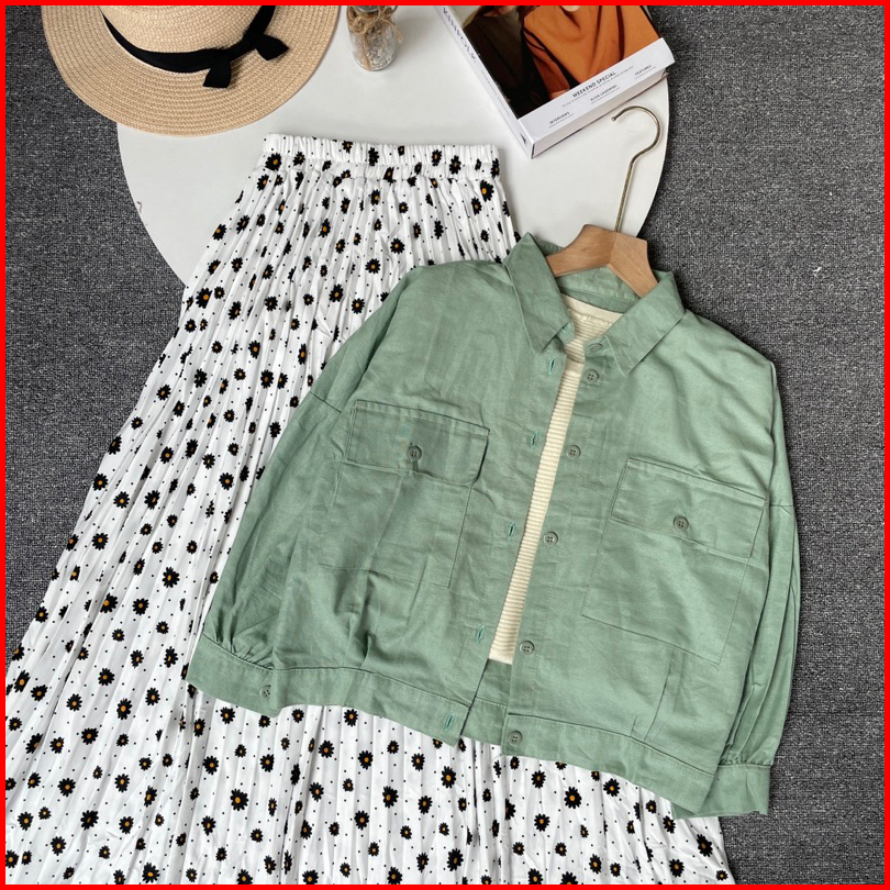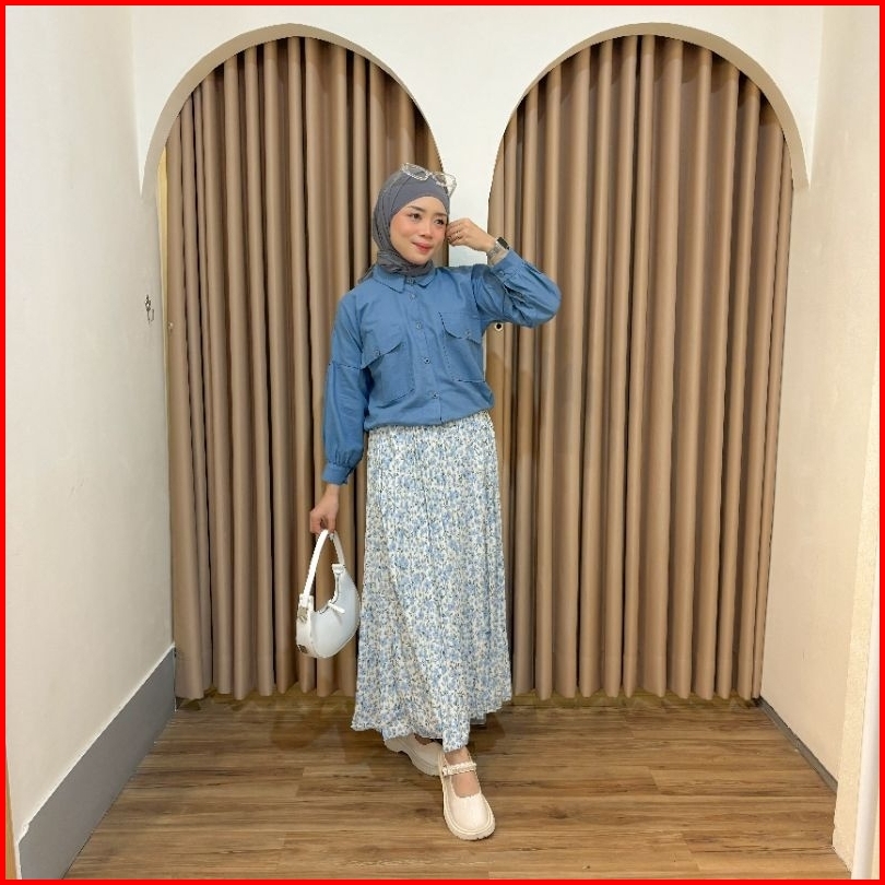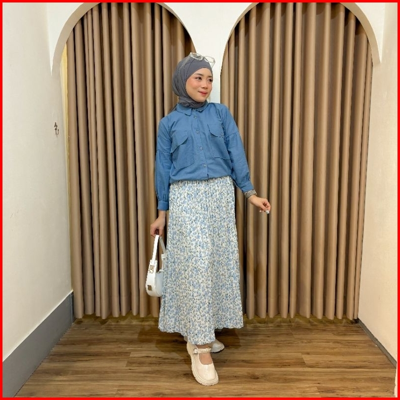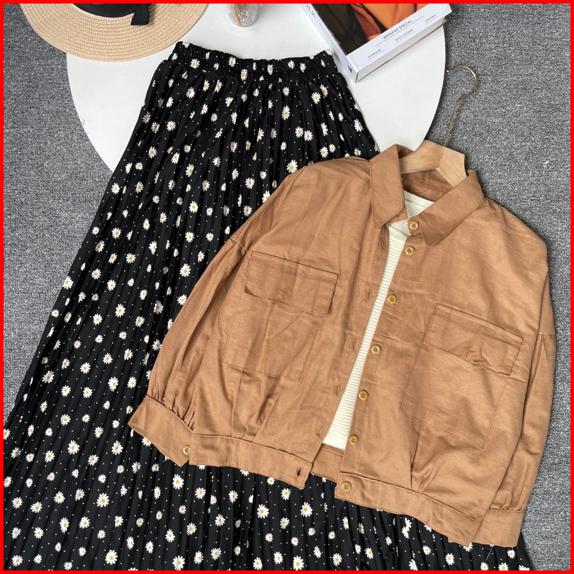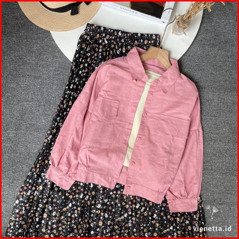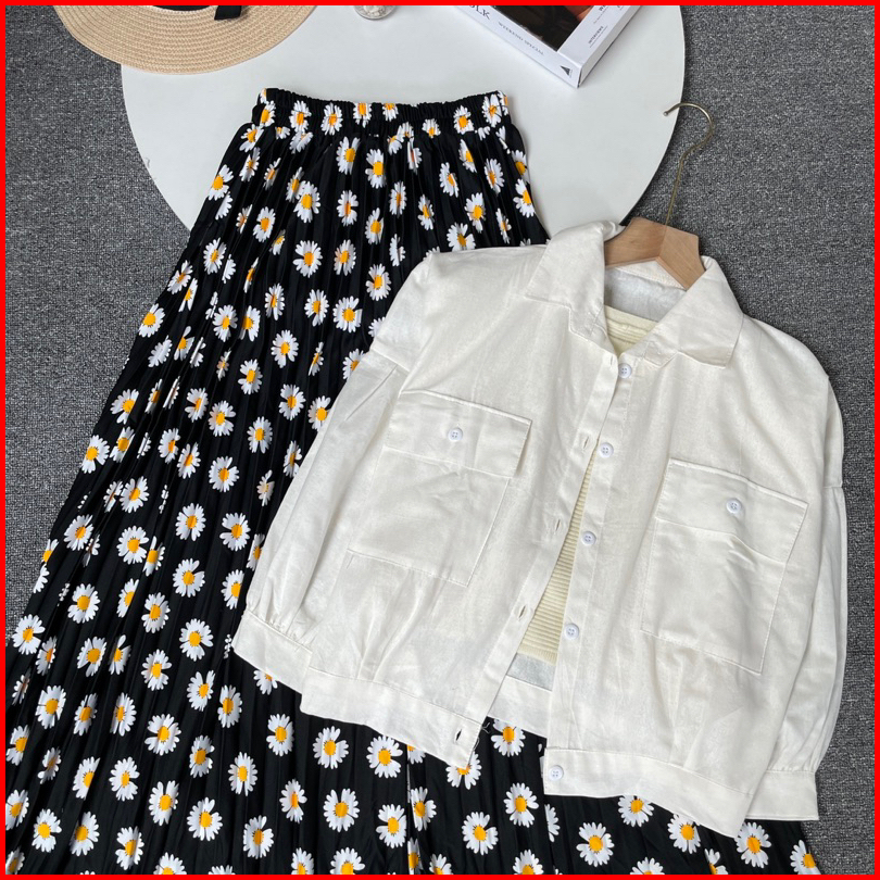 Vienetta Id - One Set Setelan Wanita Kekian Kemeja Linen Rok Plisket Bunga Setelan Wanita Kekinian Korean Style Kekinian