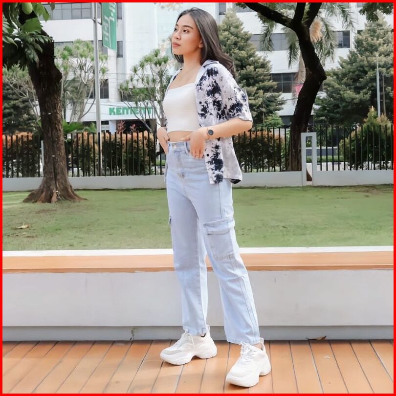 Highwaist Jeans Cargo Loose Hangover Vol.2 - Celana Cargo Jeans Highwaist Terbaru