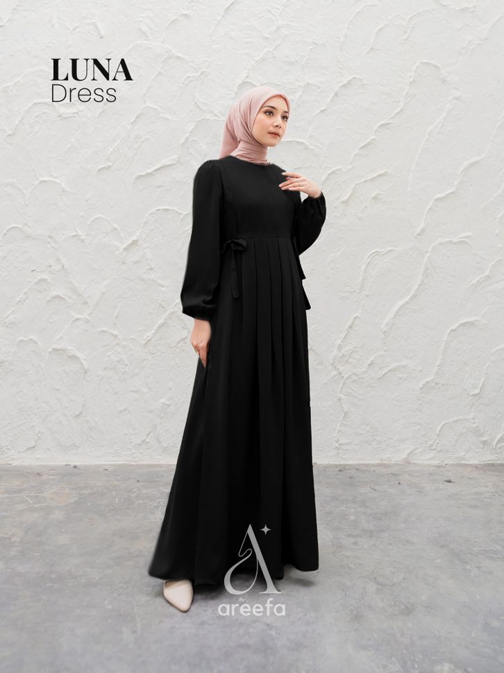 Areefa - Abaya Turkey Modern Remaja Aesthetic Hitam Polos Mewah Elegan Import Kekinian ORI