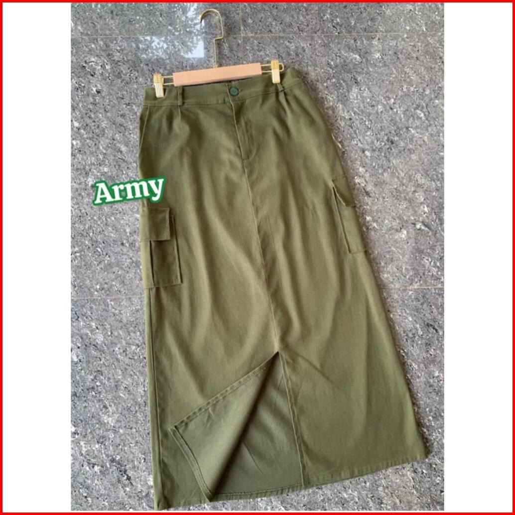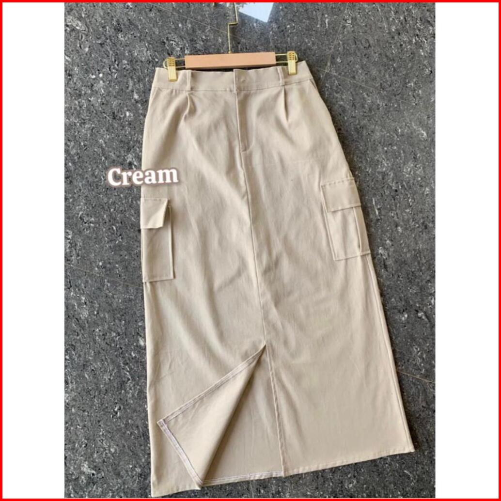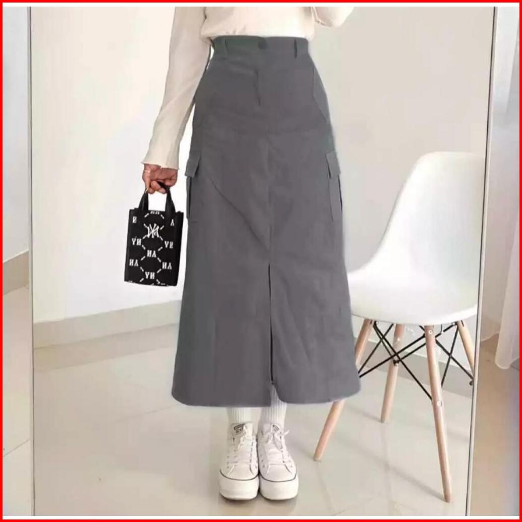 Rok Cargo Twill Belah Tengah Rok Cargo Wanita Korean Style Rok Cargo Standart Jumbo